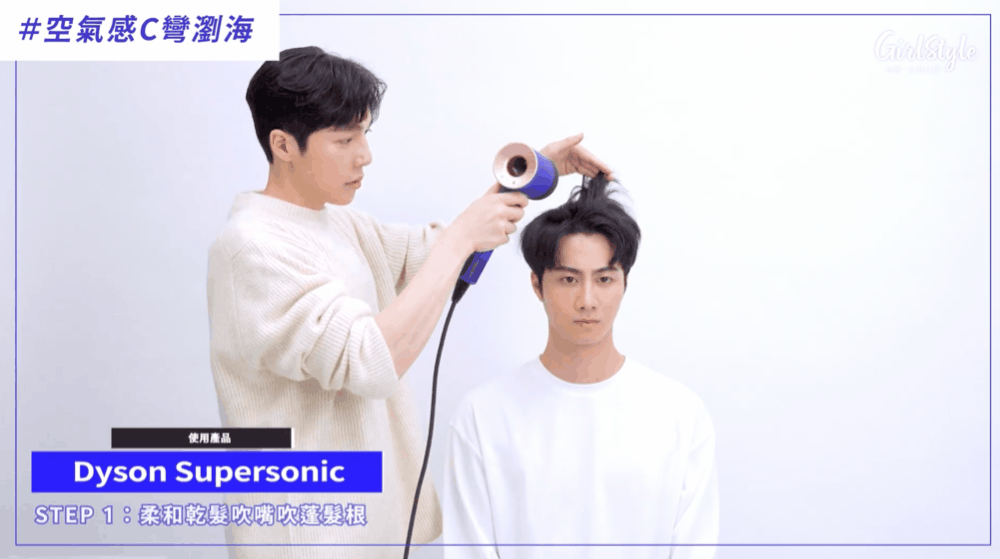 再來男友的髮型就用Dyson Supersonic搞定!男生最注重的髮根蓬鬆,透過特殊吹嘴就能在吹髮同時讓髮根好好站起來不怕邋遢!加上C字瀏海線條更能增加正式感,讓好感度大加分,簡單兩步驟就能完成全頭造型!