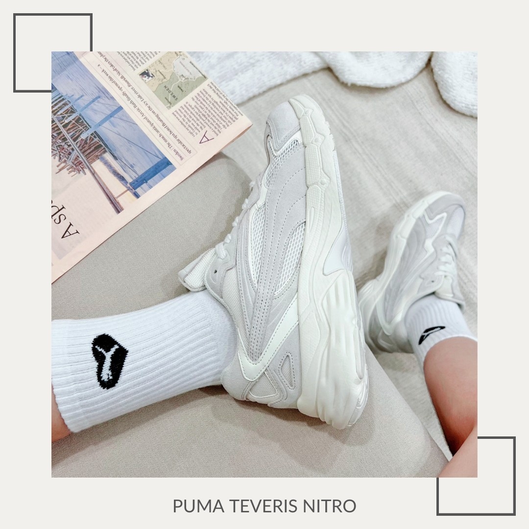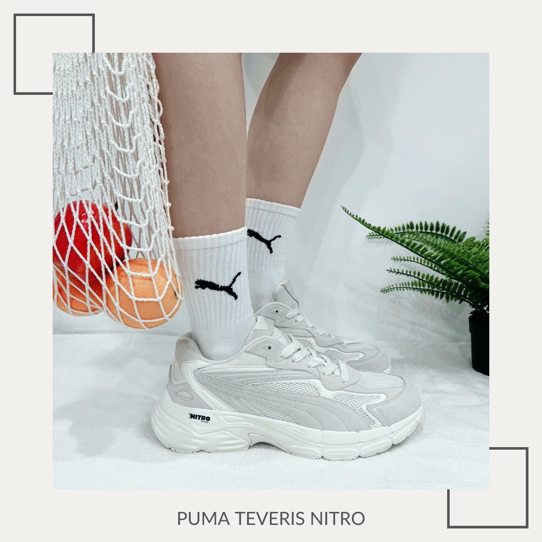 PUMA TEVERIS NITRO小編第一眼就是愛上這雙鞋型,特別採用了現在正夯的Normcore風格,在看似隨性簡約的外型上又做了充滿立體層次的細節與異材質結合,鞋子整體線條也很流暢,讓鞋身簡單之下更不失設計感,不管是平時休閒、或活動聚會,裙裝褲裝都能完美匹配,讓各種不同風格的穿搭穿上這雙都能增添一分隨性時尚!