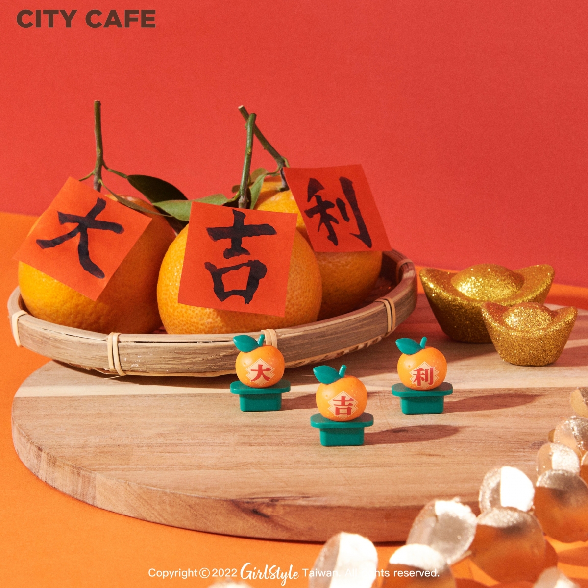 一直以來都大受歡迎的杯塞也推出新年「大吉利」總共3款,有了這個杯塞,包準你走在路上回頭率激增XD,因為實在太可愛~過年連假不揪閨密去打卡一波太可惜了吧?!杯塞是迷你橘子又有貼春聯款式,請多增加春節喜氣感的連結與可愛感,喝口橘子風味CITY CAFE,迷你橘子杯塞帶著走,從裡到外都充滿大吉大運感阿