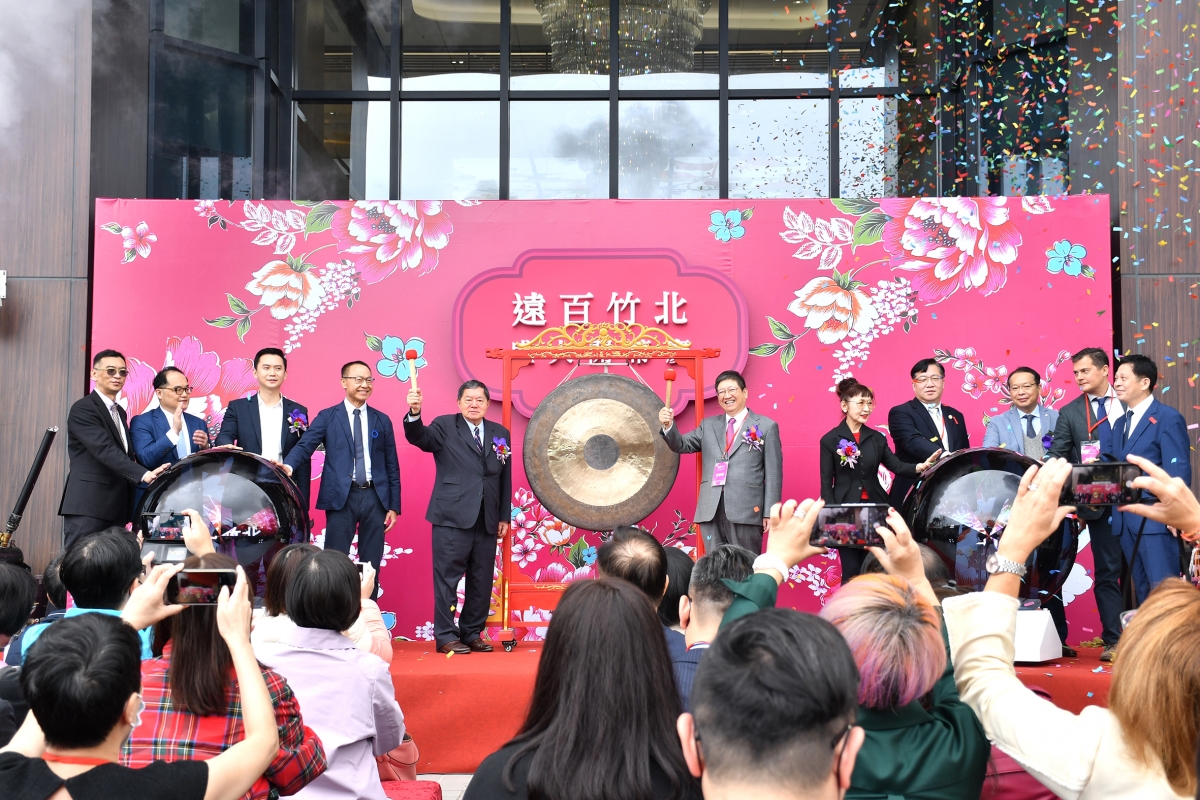 遠百竹北開幕儀式最後在眾多貴賓與民眾的見證下,一同敲響富有客家文化的好客金鑼,啟動科技智能光電球,象徵遠百竹北正式開幕、亮眼現身。