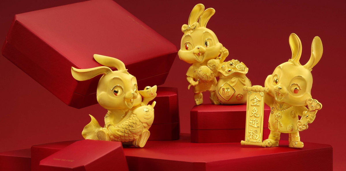 虎辭勝歲,兔躍新程。象徵好運與快樂的兔年來了!活潑伶俐的兔子將帶你進入充滿幸福的新一年!好動的小兔上竄下跳,發現每個承載美好祝福的黃金珍藏,充滿活力和希望的金兔與你一同傳遞美滿祝福,與親友摯愛分享新年的喜悅。周大福「金兔迎福」生肖系列不論送禮自用均盡顯心思,每款金飾與你迎春接福,今年兔年定能「兔」氣揚眉一番!