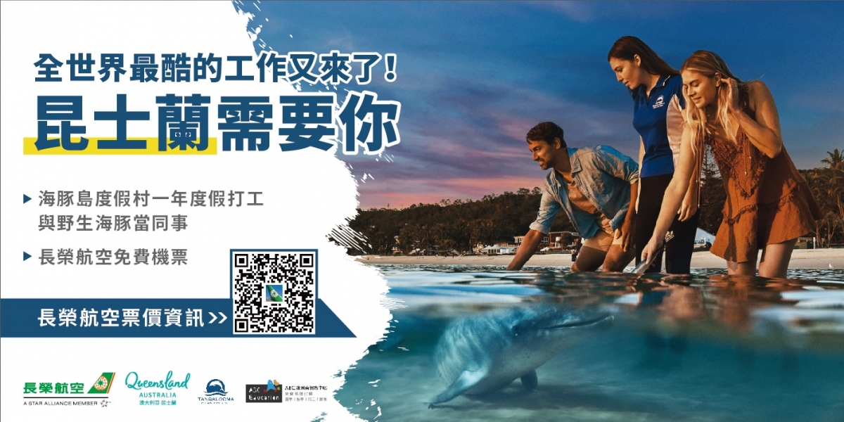 此外,昆士蘭州旅遊暨活動推廣局攜手長榮航空,以及鄰近昆士蘭首府布里斯本的海豚島度假村(Tangalooma Island Resort Moreton Island),免費說明會現場、提供符合澳洲海外打工度假資格者,取得「海豚島度假村一年給薪工作」和「長榮航空台北-布里斯本經濟艙來回機票」的機會。希望藉此說明會激起台灣年輕人的熱情,歡迎30歲以下、符合澳洲海外打工度假資格的年輕人,相約朋友一起展開青春冒險之旅,追尋自我人生目標,並探索陽光昆士蘭的美好。