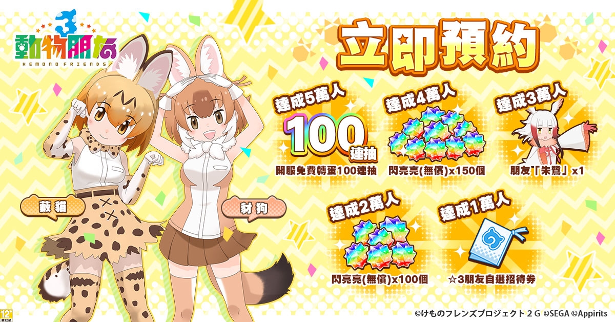 各位朋友們,即日起參加《動物朋友3》事前預約活動,同時至雙平台商店進行預註冊活動,遊戲上線不僅可以收到第一手通知,精彩內容跟驚喜福利活動也會不定時推出唷!請持續關注《動物朋友3》的活動相關內容,歡迎所有喜歡動物朋友3的朋友們,Welcome to Japari Park!
