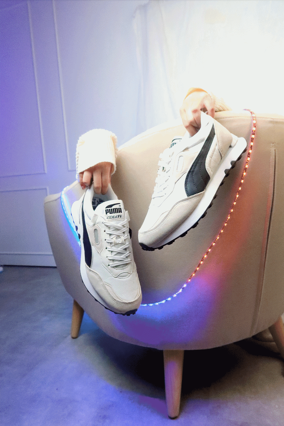PUMA Rider FV系列的這兩款大大減低腳的負擔,長久穿也不怕累腳,特有的減振顆粒鞋底設計,將你行走時與地面的回震全都吸的一乾二淨,走起路來的那個舒適感真的不是小編我想誇!超!極!軟!PUMA Rider FV的鞋面是使用透氣網布當基底,整個包覆在腳上,讓原本臭氣熏天的鹹魚味有所改善,脫下鞋子更不用有半點恥度,228要連玩好幾天,走上萬步路欸,不收你確定嗎?