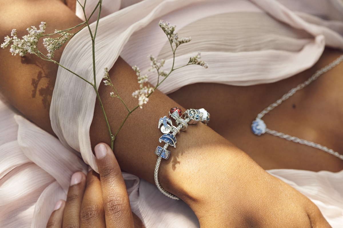 從寂靜的冬天到充滿希望的春天,最新Pandora Moments設計凝住季節更替時稍縱即逝的大自然美態。如燕子飾品鑲嵌明亮切割藍色人造水晶,準備翱翔天際;鍍14k玫瑰金羽毛造型泛出溫暖光芒。深受歡迎的幸運紅色瓢蟲吊飾經過重新設計,以鮮紅色人造水晶配黑色琺瑯細節,是品牌首度運用琺瑯點綴寶石的創作,效果生動逼真。新春季串飾與2023年春夏另一焦點之作 —— Pandora Moments粒紋手鏈成為絕配,手鏈於本年初推出,配以扁平的心形飾釦,以創新粒紋質感令春日故事造型煥然一新。