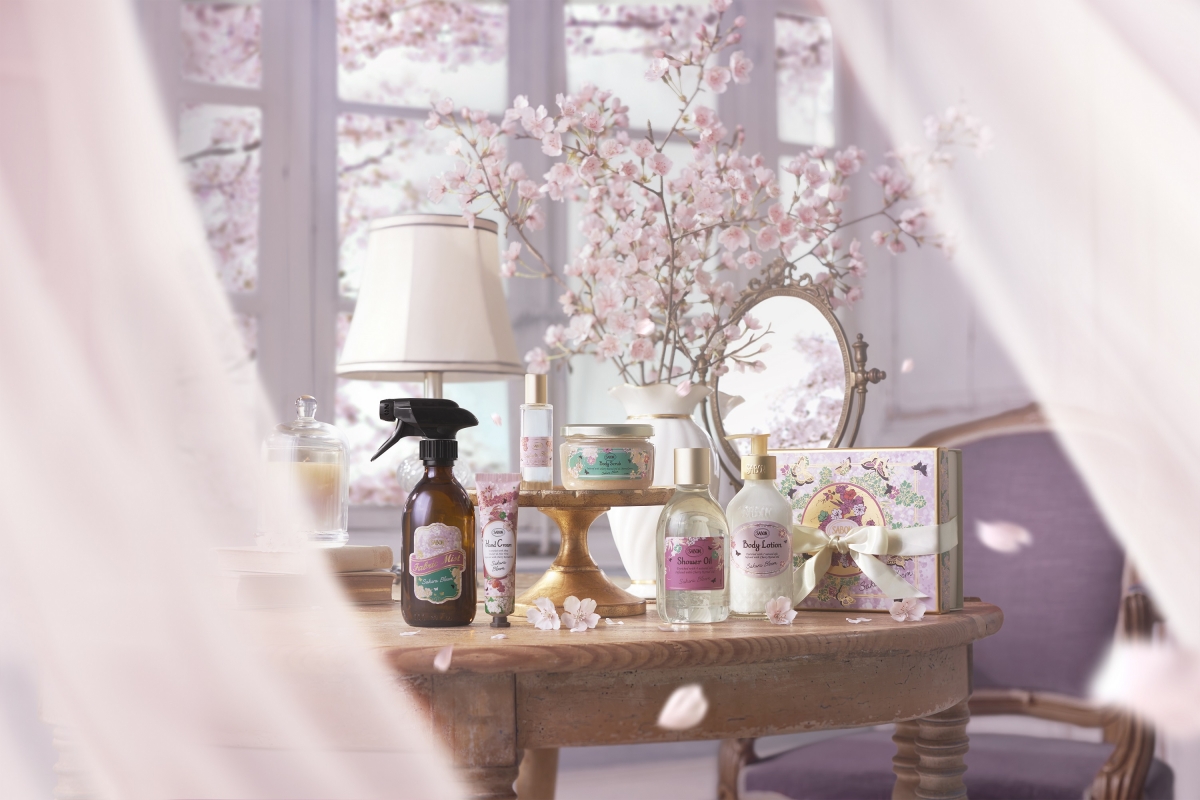 SABON透過香氛詮釋生活中的幸福與愉悅, 2023年3月,以盛開的櫻花為靈感,勾勒出當風吹拂過櫻花海時的風景,同時亦是慶祝SABON於日本的第15週年,「花霞之境限量系列」因此誕生,全系列共有6款單品與1款禮盒,並傾注本次系列的限定成分:櫻桃籽油,迎來春天,養出粉嫩的身體肌膚。