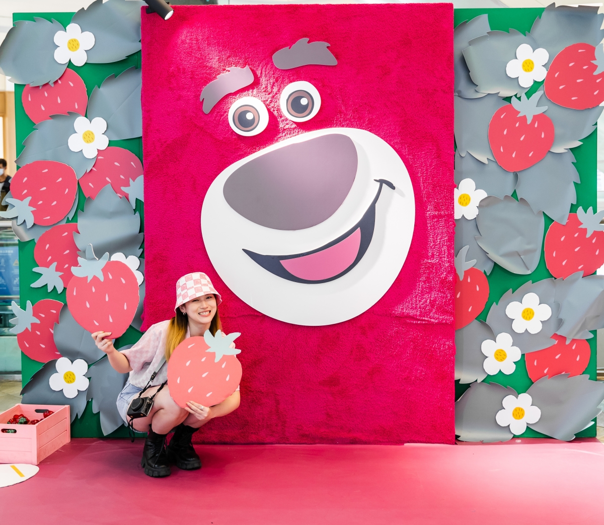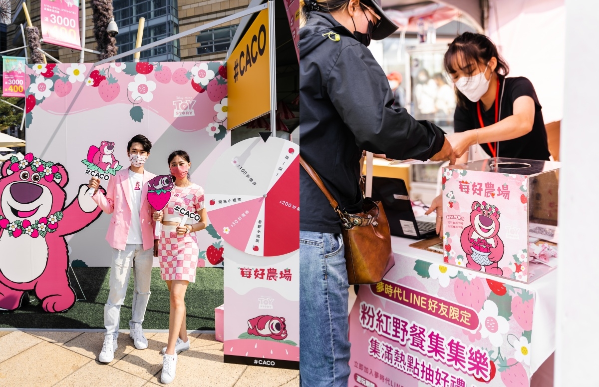 莓好農場活動不但可以免費入場,又有多個熊抱哥造型網美牆讓大家拍到手軟。跟大家分享個可愛小插曲,因為小編我身穿滿滿粉紅色,就有位可愛的弟弟請小編陪他去參加抽獎活動,瞬間被融化的小編我二話不說直接同意了XD!再次提醒大家,千萬不要忘記穿著粉紅色一起dress code拿好禮呦~