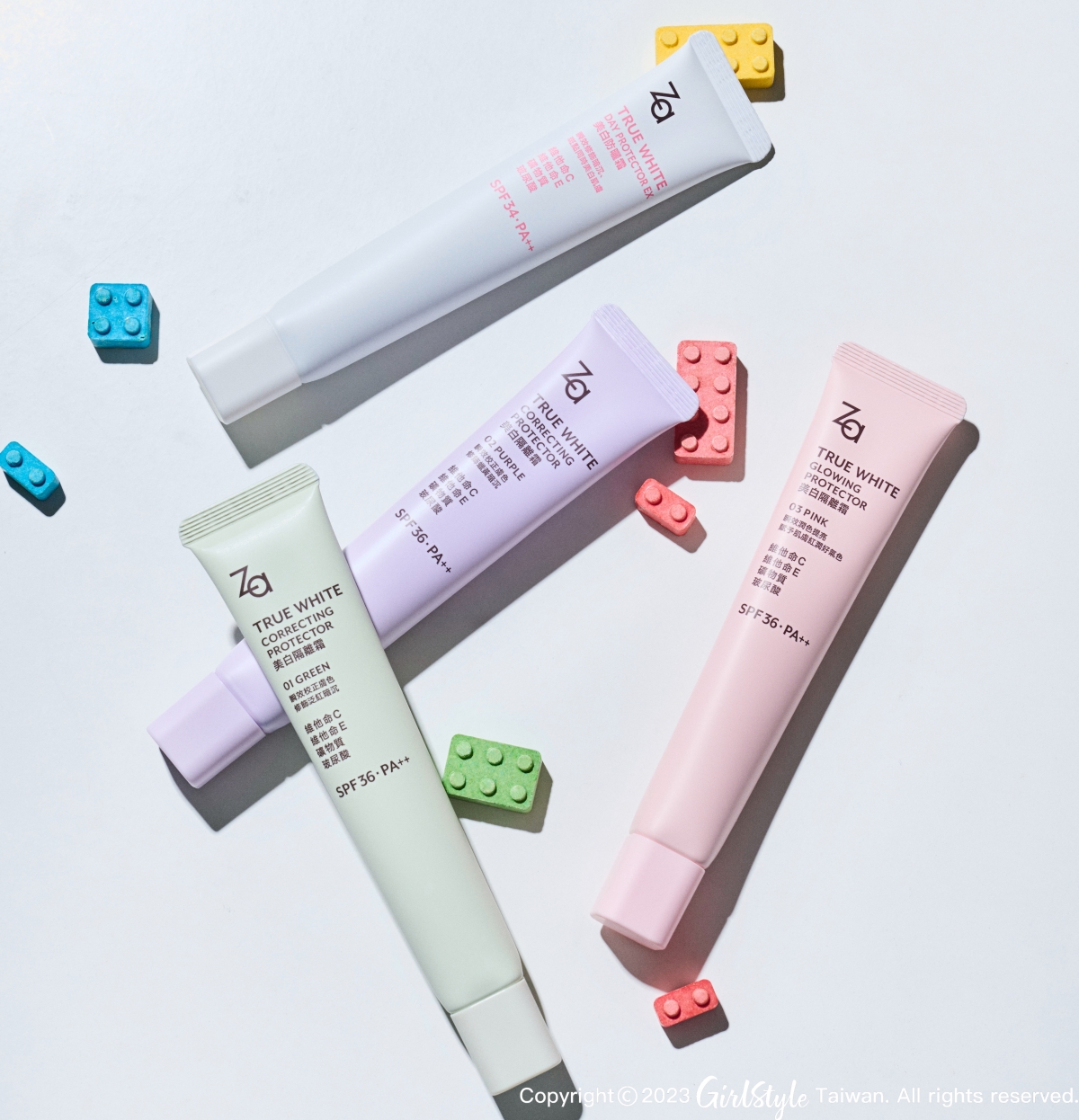 Za美白隔離家族,最著名的一大亮點當然就是它的「四大校色力」,裡頭的校色因子能夠完美修飾肌膚瑕疵,讓膚色更加均勻又亮透白,從可以自然提升肌膚透亮感的經典款「美白防曬霜」,以及番茄人必備的「美白隔離霜(01勻透綠)」專門修飾像是臉頰鼻翼的泛紅、紅痘疤,還有黃肌真愛也是熱銷第一的「美白隔離霜(02透亮紫)」,一秒就能隱形熬夜追劇的暗沉蠟黃感,還能讓肌膚看起來超透亮,最後「美白隔離霜(03柔光粉)」白肌一擦也能有人間水蜜桃般的自然紅潤氣色,根本四支都超欠收!
