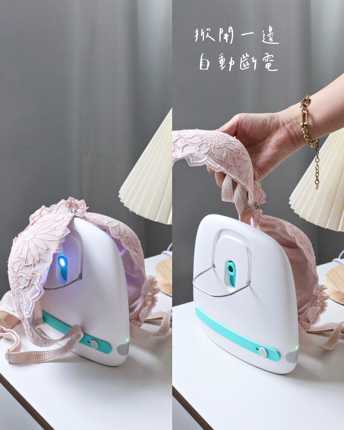 這台可愛的神奇機器就是來自「USii 優系」的「內淨美|深紫外光(UVC)貼身衣物抗菌器」!一開始小編就被這超Q外型吸引,深入瞭解後才知道更不簡單~它是透過深紫外光進行作用,UVC抗菌力居然高達99.9%,像我們女生平常手洗貼身衣物曬乾之後,就能接著使用這台抗菌器,可以有效抑制內衣褲的細菌滋生,讓乾式除菌更完全,不論內衣、內褲就不用怕洗過還是容易飄出異味或是發霉,就能夠大大降低妹妹感染或是皮膚過敏的風險,讓私密處不再撓癢癢~