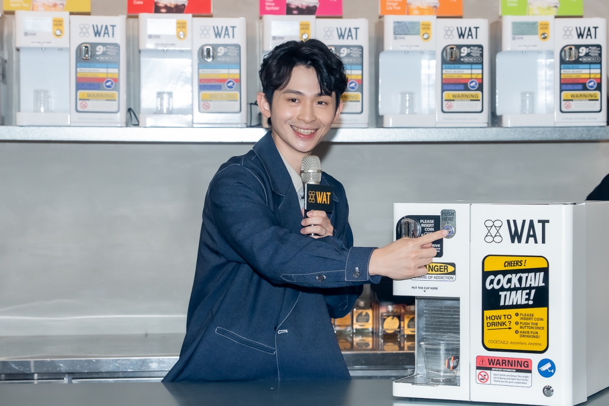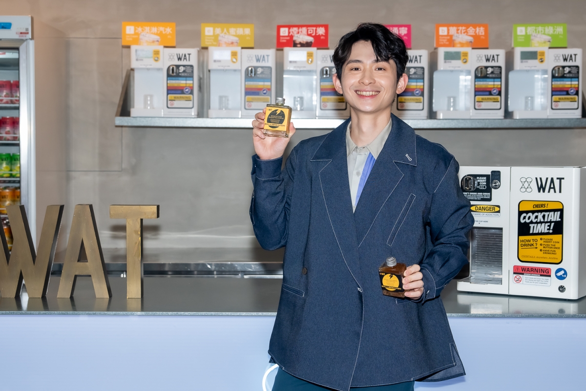 全台灣最潮的瓶裝雞尾酒品牌WAT,21日重磅邀請喜劇演員博恩擔任一日店長,也是博恩首次跨界與WAT推出聯名酒款-「暴鐳彩蛋」,活動現場,他開心與粉絲分享「暴鐳彩蛋」的包裝概念,現場親手製作以「破蛋」為概念的調酒,給粉絲試飲。博恩透露愛突破各種框架,大膽嘗試不同的可能,跟WAT的理念不謀而合。