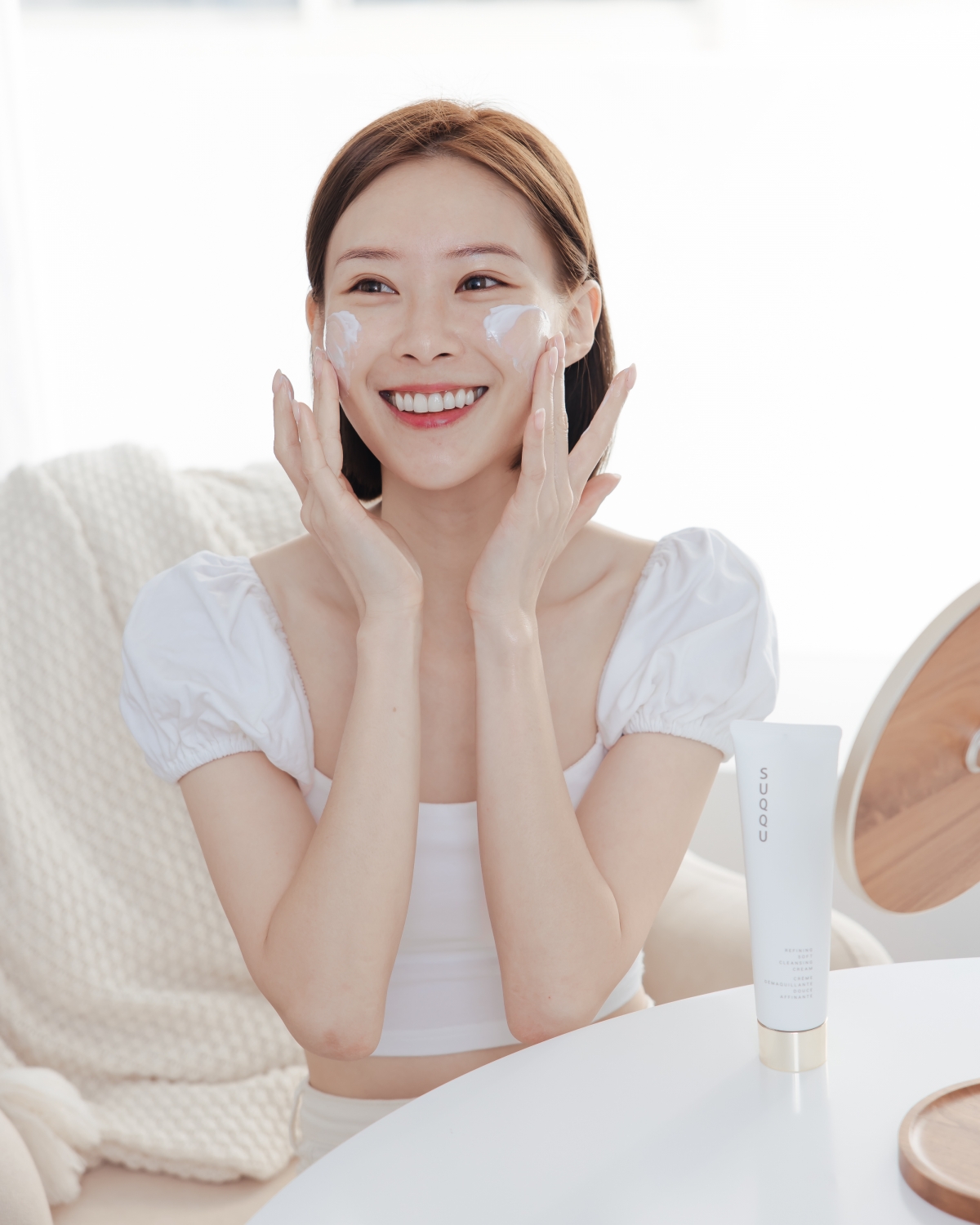 平時畫正式全妝時就很適合用潔膚油一瓶搞定,而日常淡妝也還有更療癒的選擇,那就是SUQQU 「精質柔和潔膚霜」!這款質地擠出來就像是霜淇淋一樣,非常柔滑好延展,輕輕在臉上畫圈推開就能立馬臉上污垢和油脂通通溶解,卸後的膚觸也會感覺非常乾淨清爽不緊繃,臉會水水潤潤的還留下一股淡淡的花香味,超級舒適自然~