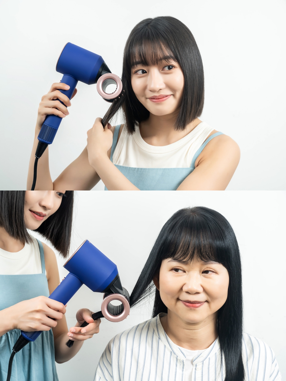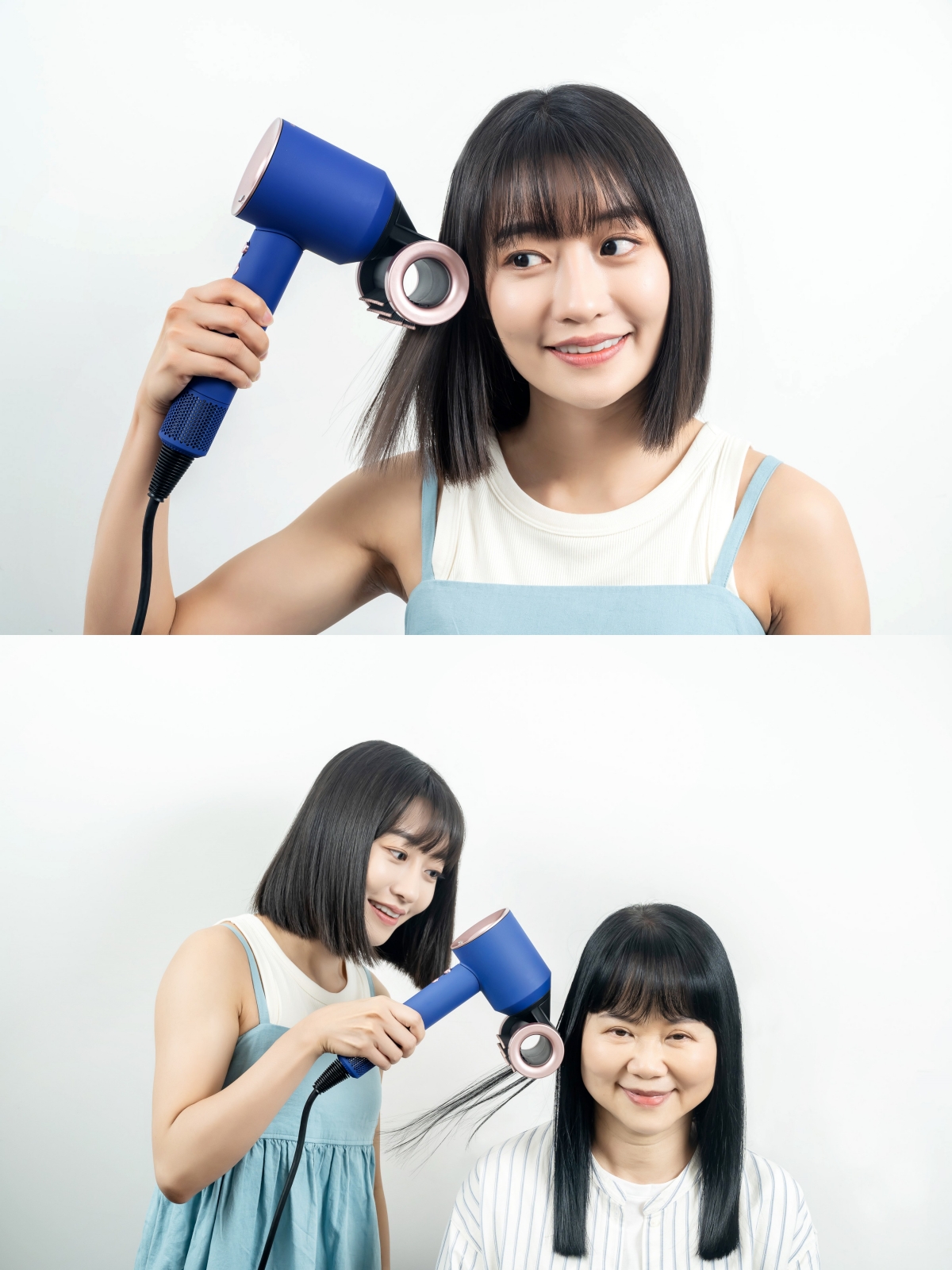 這次Dyson就找來一對可愛又感情如同閨密的母女,更邀請了帥氣又專業的 Ryan老師,為我們示範使用Dyson Supersonic™吹風機 HD15,搭配全新「二合一抗毛躁順髮吹嘴」,教大家打造兩款媽媽與女兒都適合的「閨蜜髮型」!操作簡單方便,而且自己在家就能完成,幫媽媽「變髮」的同時自己也能更加亮眼!