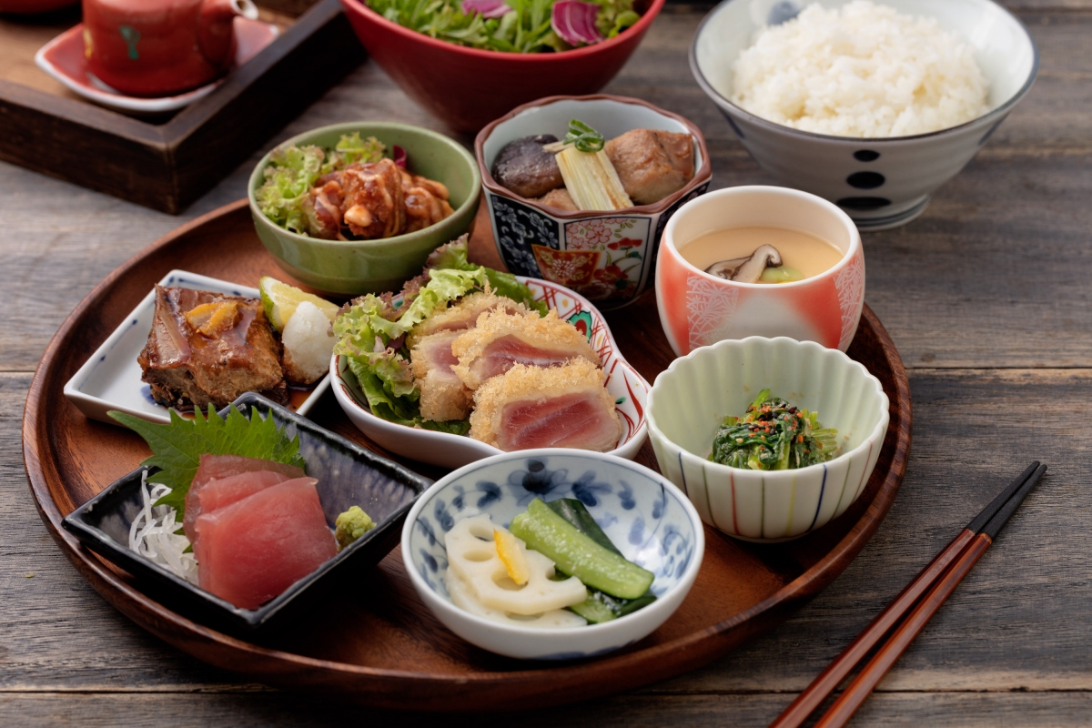 年年推出鮪魚季的鳥丈爐端燒,今年同樣鮪魚不缺席!但是,今年為了讓鮪魚控能一次吃好吃滿,特別於午餐11:00~16:30推出午餐限定的「鮪魚滿腹御膳/480元」,一套500元不到的日式套餐,能從鮪魚生魚片一路吃到酥炸等共五種料理手法,附上沙拉、漬菜、白飯與湯品,料理豐富到讓整個日式托盤滿滿盛載,超滿足!