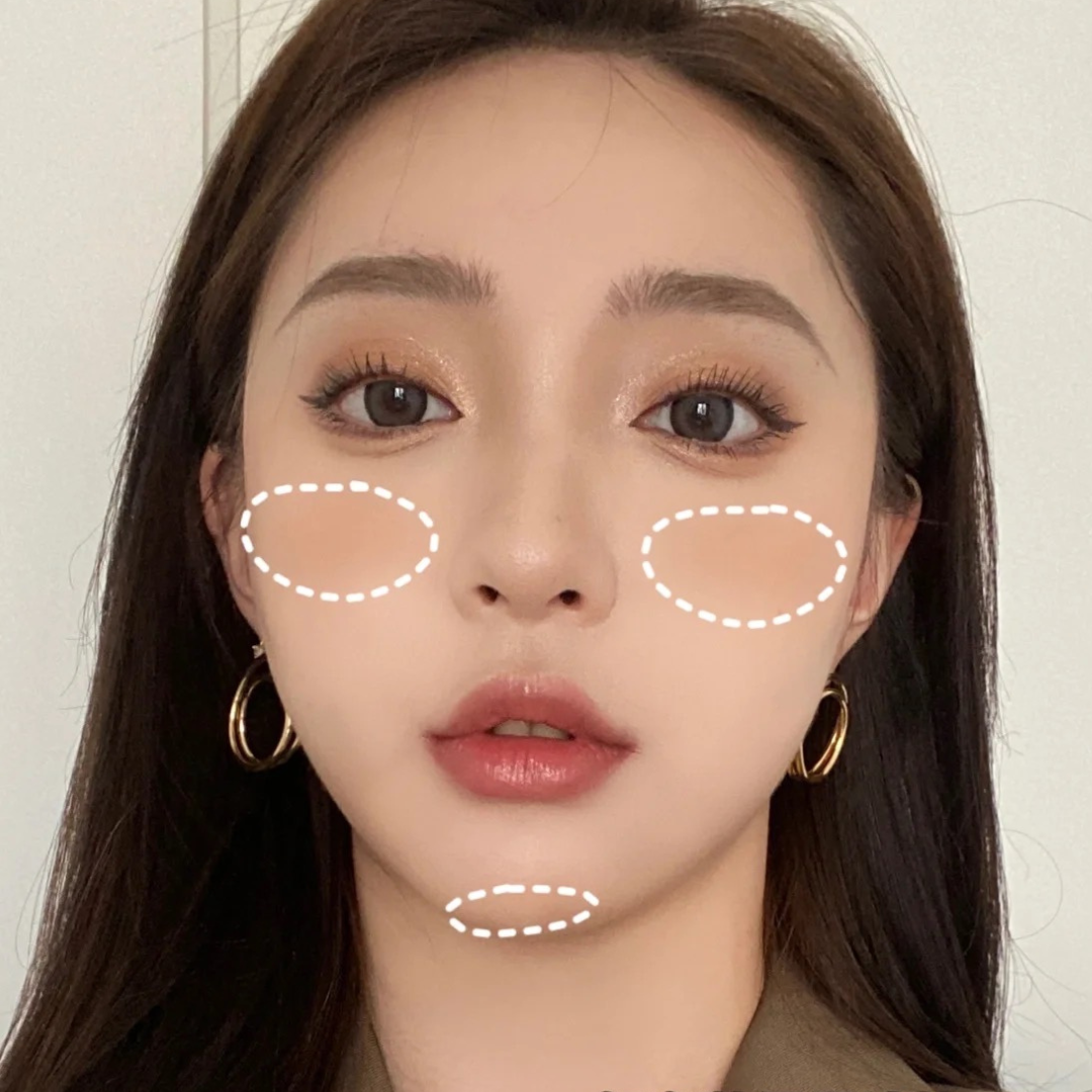 最後壓軸的是最簡單、常見的「日常通勤畫法」,主要畫的位置集中在面部中央,從臉頰開始向下往面中輕掃,越接近面中的位置顏色越淺,這種畫法可以完美搭配各種風格的妝容,也可以為女孩帶來減齡幼態的效果。
