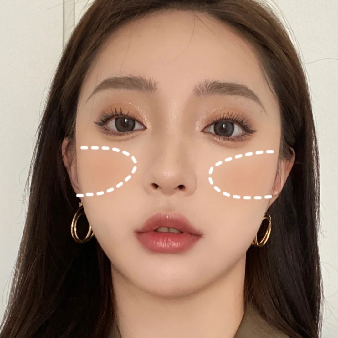 顴骨凸出或顴骨過高的的女孩可以學這個畫法,將腮紅掃在顴骨最高處的位置,並沿著顴骨向上暈染,這個畫法可以有效的在視覺上弱化顴骨問題,還可以同步讓臉部顯小、顯嫩,瞬間年輕3歲不是夢!