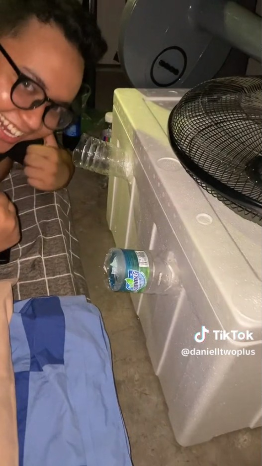 不少人為了省錢,會在白天時待圖書館、餐廳、百貨等公共空間吹免錢冷氣,但怎麼吹晚上都還是得回家。回去後不想花大錢吹冷氣怎辦?一名在吉隆坡念書的大學生丹尼爾(Daniel),便透過簡單的原理將電風扇改造成能吹出冷風的「冷氣」。