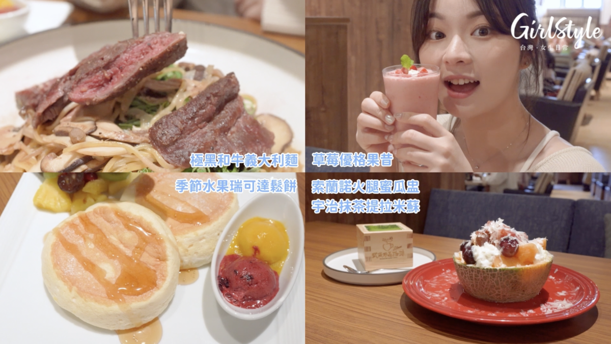 不管你想吃甜食或鹹食,武藏野森珈琲Diner都超齊全!小編這次點了索蘭諾火腿蜜瓜盅、宇治抹茶提拉米蘇、季節水果瑞可達鬆餅、極黑和牛義大利麵、草莓優格果昔,每一樣都超級好吃!特推瑞可達鬆餅,淋上香甜蜂蜜,超綿密口感,入口即化,真的令人難忘,想一吃再吃!