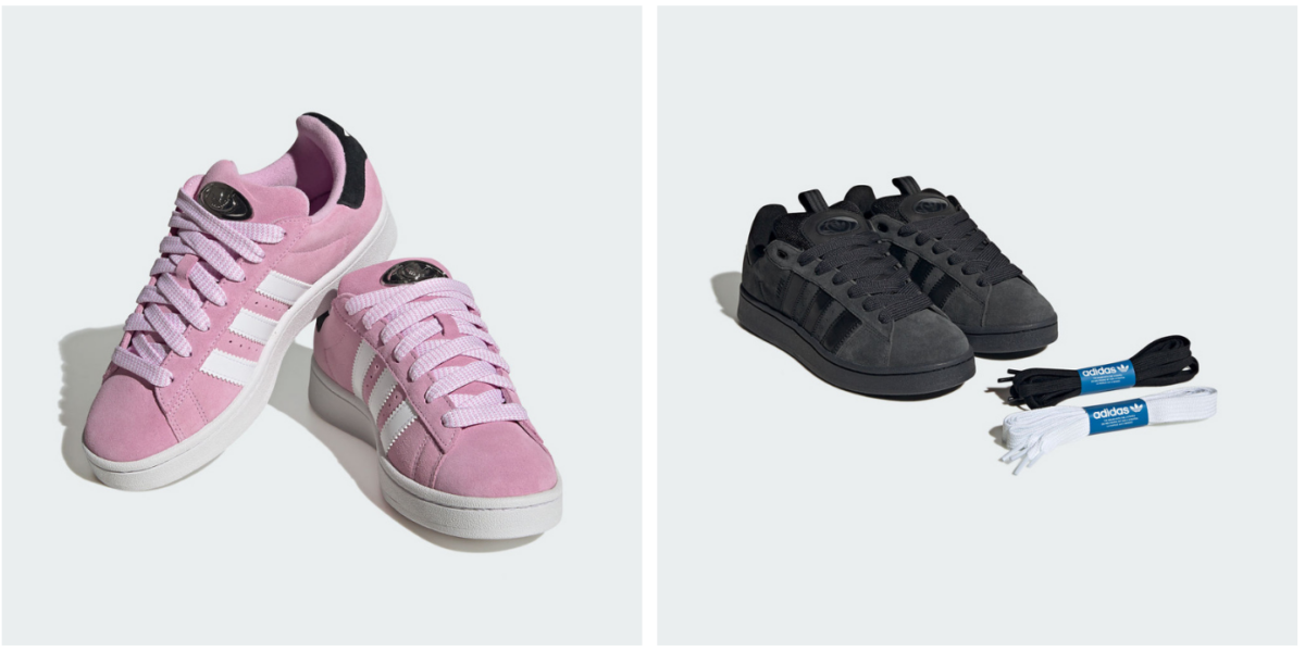 CAMPUS 00s更推出女孩們都會尖叫的「夢幻粉色」與酷帥的「個性灰黑」款,在細節處也值得我們深入了解一波!全麂皮鞋面展現質感微寬厚「復古 logo 鞋舌」更是系列精華所在,除配放大的三葉草標誌,也能使腳踝處看起來更顯瘦,這不就是我們女孩兒最夢寐以求的嗎!此外整體包覆性極佳,厚底設計也讓腿部視覺效果直接拉長~~重點是圓潤飽滿的鞋型無論想要搭配裙裝、褲裝或是 Oversize 帽T都好看到不行! 還可以依照自己的心情替換鞋帶,這麼實穿又實搭難怪迅速成為許多人的心頭愛!這種加分系的單品是一定要入手的呀~~~