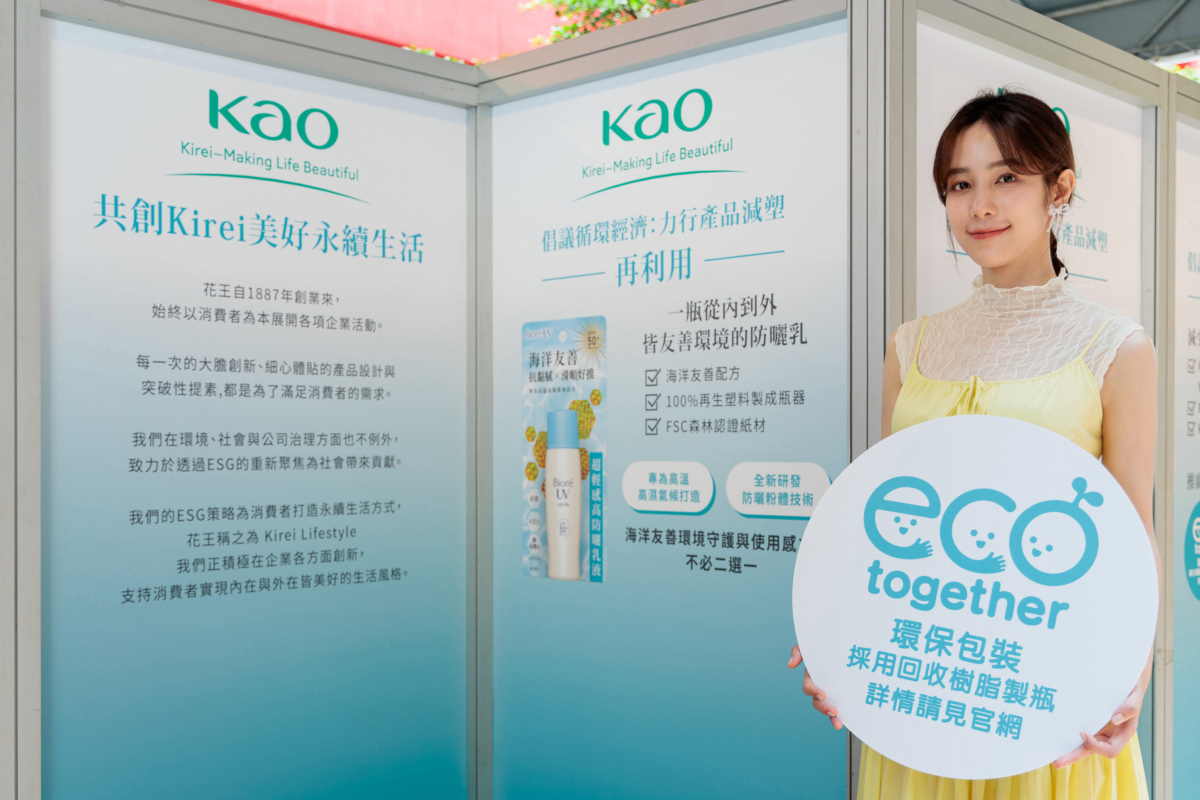 Bioré 防曬家族除了宣告推出首支「海洋友善」的Bioré超輕感高防曬乳液,活動現場同時也展出花王企業「Kirei美好永續生活」ESG專區,介紹花王致力於為消費者打造永續的生活的具體行動。目前已有超過60款商品使用100%或部分再生塑料製作瓶器,並減少原生樹脂使用及呼籲消費者多使用補充包,透過包裝上的花王環保標章,鼓勵消費者更有意識去選擇環境友善的產品,響應生活減塑,共創Kirei美好永續生活!