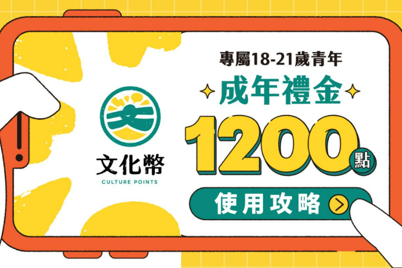 文化部為了鼓勵青年體驗文藝活動,今年年滿18至21歲(出生日期從2001年9月1日至2005年12月31日)、具有本國國籍青年和符合資格的外國青年,6/6開放手機下載「文化幣」APP,可領文化成年禮金1200點,價值1200元。