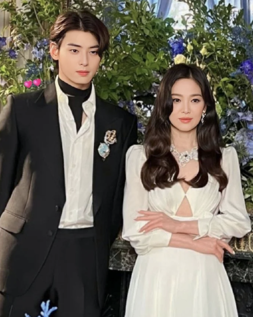 而宋慧喬和車銀優當天參加慶祝晚宴的神仙同框也在網上瘋傳,兩人在像花園一樣裝飾的背景合影,展現了豪門姐弟既視感。網友們紛紛表示「好像女王和她年輕的皇弟」、「哇 這真的不是AI畫的羅曼史漫畫封面嗎」、「瘋了超帥超美」、「真的好像什麼名畫一樣 後面還剛好有畫框kkkk」、「兩個臉蛋天才的相遇」。