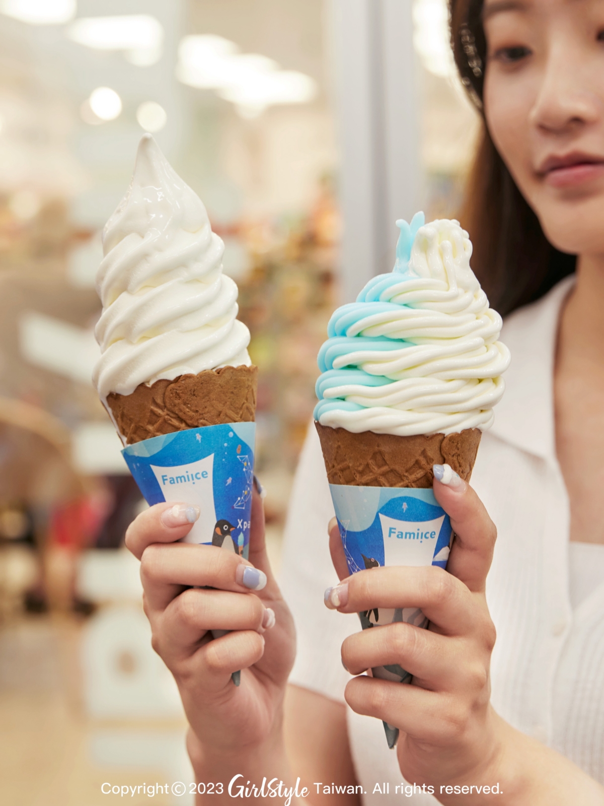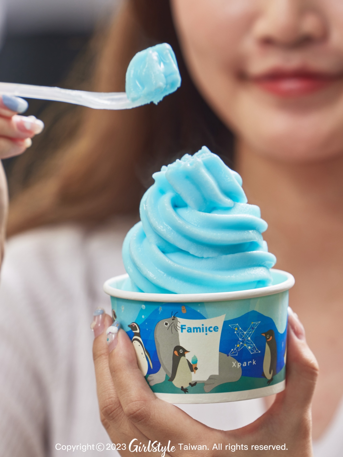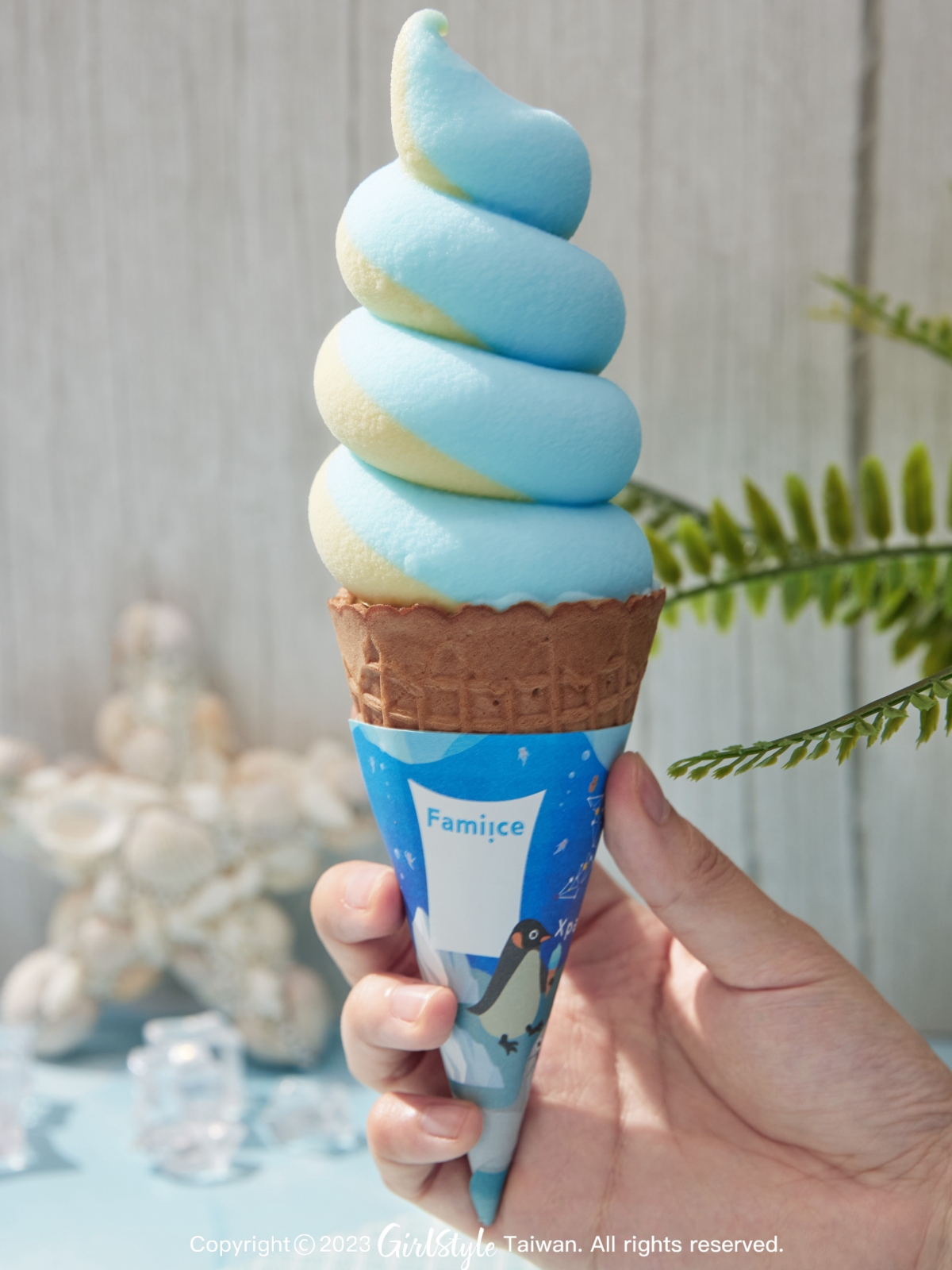 不僅口味令人驚喜,這次「嗨嗨蘇打霜淇淋」限量聯名霜淇淋紙杯及紙套,也是一大亮點!從色彩上藍白雙色相互搭配就像是沁涼的海浪,讓人不論是視覺還是味覺都彷彿瞬間到了海攤、吹著海風邊吃著冰超級享受!