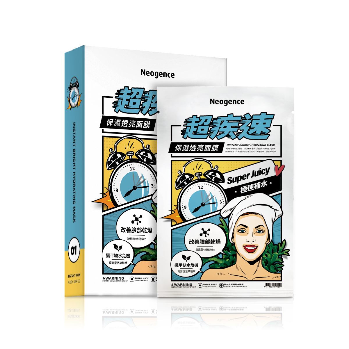 早上忙碌上班、晚上熬夜追劇,當每天面對生活忙碌,奔波一整天,隔天起床肌膚暗沉、或是約會前發現肌膚缺水容易脫妝,這時候最需要的是肌膚急救超人!Neogence霓淨思全新推出「超疾速面膜系列」,一片面膜的時間,能疾速解決缺水、乾燥、暗沉、蠟黃等肌膚問題,立即保濕透亮、綻放光澤勻白美肌!