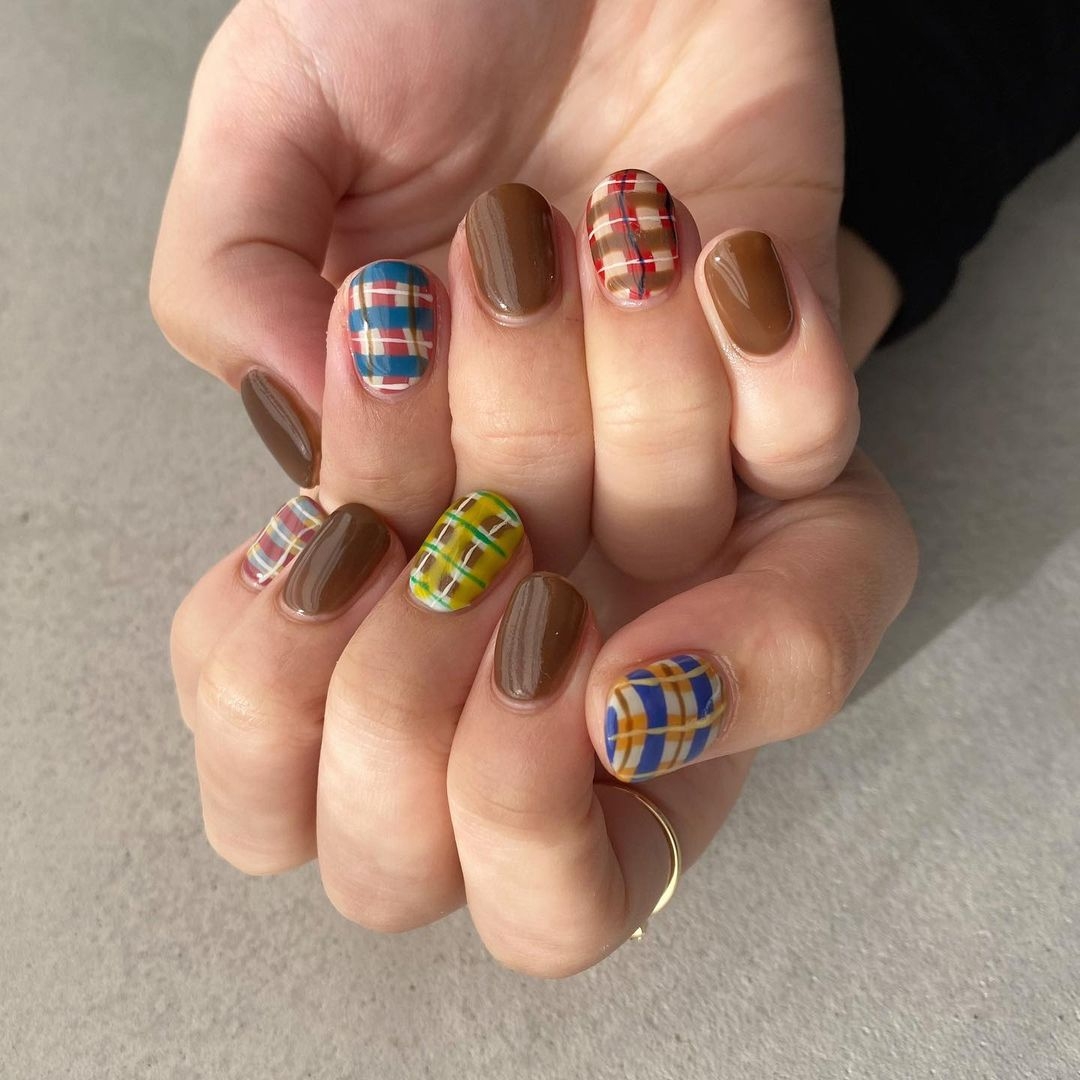 童趣風格很容易因為過於可愛而讓整體的略顯稚氣,喜歡繽紛可愛色彩的你一起來看看所謂「不幼稚的童趣風」該如何呈現吧!推薦大家可以利用「大人系主題」來帶出美甲的風格定位,例如運用格紋、透明感圖型等,明確且非卡通感的主題加上多變的色彩,就能輕鬆打造出日系、可愛感的美甲。