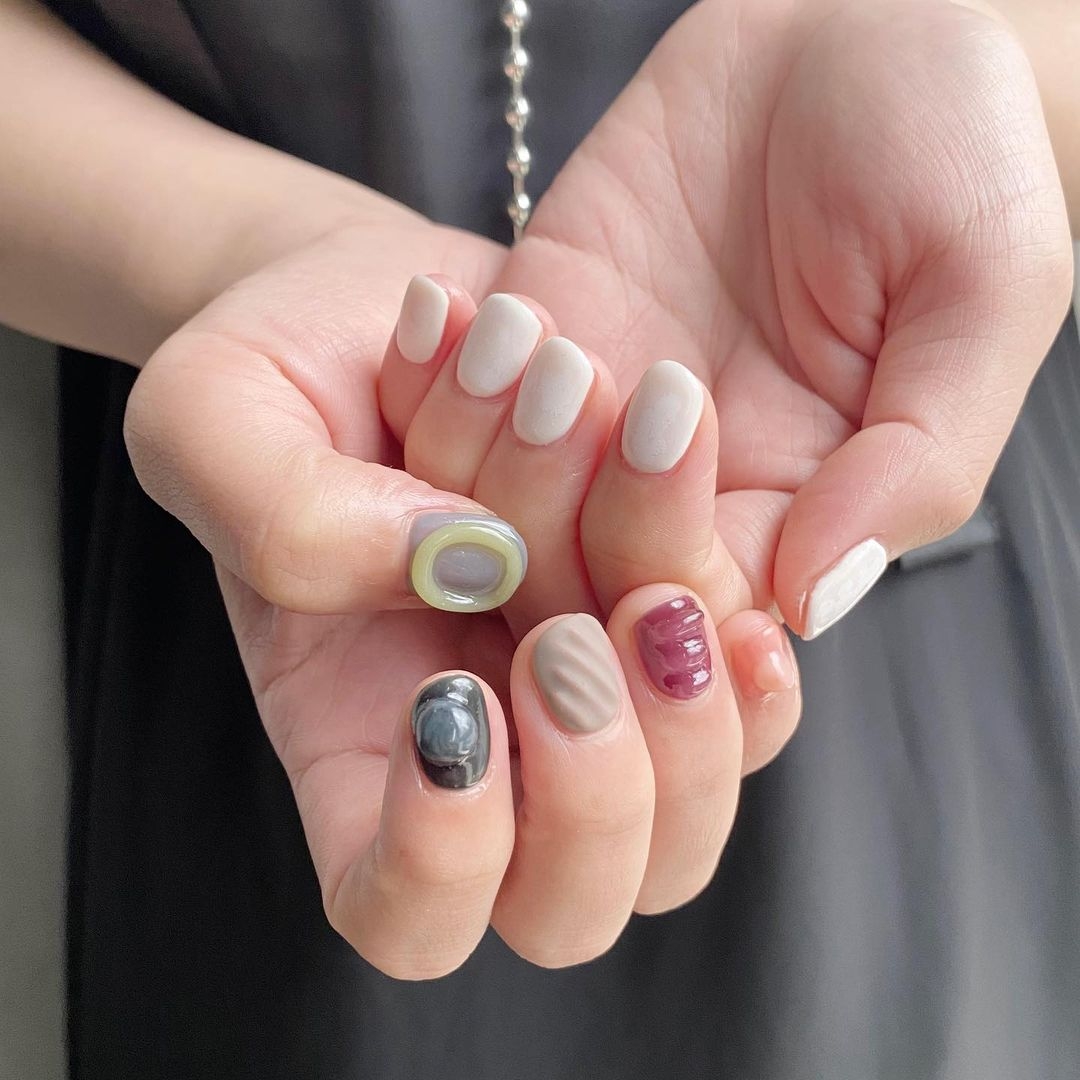 建議收藏!精緻女孩必備「日系美甲」圖鑑,質感滿分藝術感氛圍感、自帶生活感的低飽和復古撞色♡