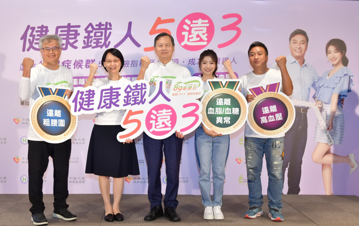 衛生福利部106-109年國民營養健康狀況變遷調查結果顯示,台灣19歲以上代謝症候群盛行率為34.6%,且75歲以上長者盛行率達58.8%[1]。愈來愈多研究證實,代謝症候群有如萬病淵藪,不只三高慢性病更會提高罹癌及失智症風險!為此,千禧之愛健康基金會邀集中央健康保險署、國民健康署一起宣導代謝症候群並發起「健康鐵人 5 遠 3」網路活動(https://89day.1000-love.org.tw/healthy80-90/),並邀請到透明系女孩韓菲與星爸王中平共同擔任健康大使,力邀全民一起定期測量代謝症候群關鍵5指標,做個健康鐵人。