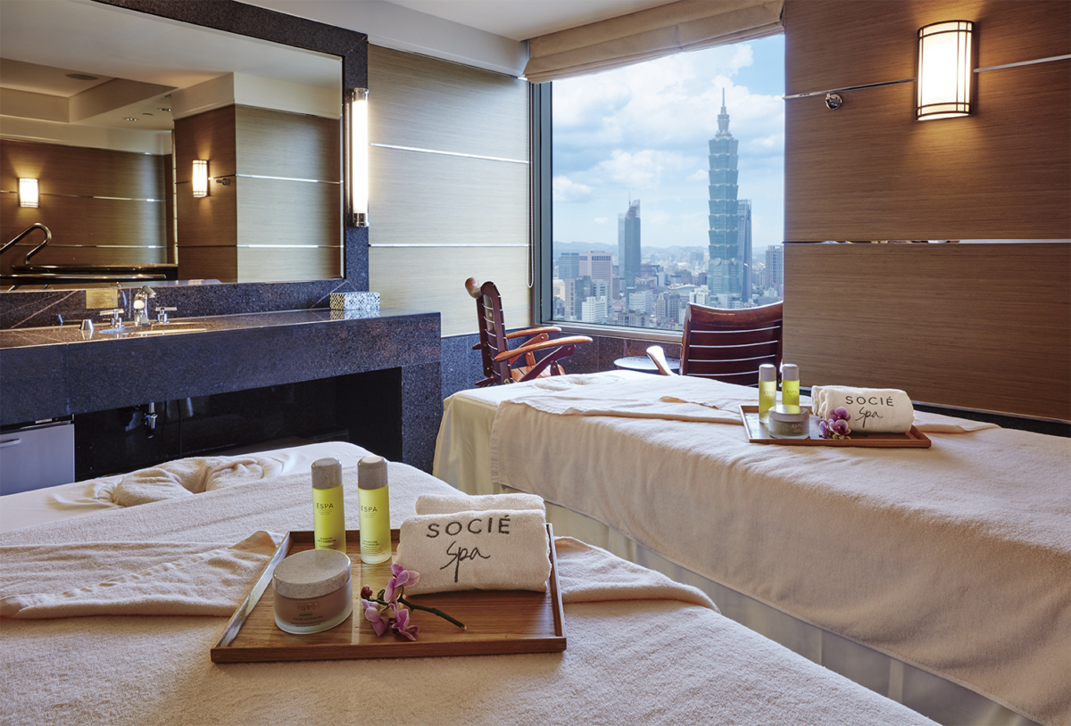 位於台北遠東香格里拉40樓的SOCIÉ Spa坐擁迷人城市高樓景觀,入口處深色大理石梯廳、素雅白色蝴蝶蘭與綠境,給人優雅又放鬆的氛圍。步入沉穩低調且具品味的質感場域,彷彿轉換喧囂城市時空進入秘境,在專屬空間換上柔軟浴袍,窗外景致盡收眼底,部分芳療室可眺望台北101大樓,白天的陽光與明亮給予身心能量,夜晚享受萬家燈火的璀璨夜景。透過美容師專業溫暖的雙手、精油療癒的香氣與讓人馳放的輕音樂,展開滿足五感的身心靈旅程。