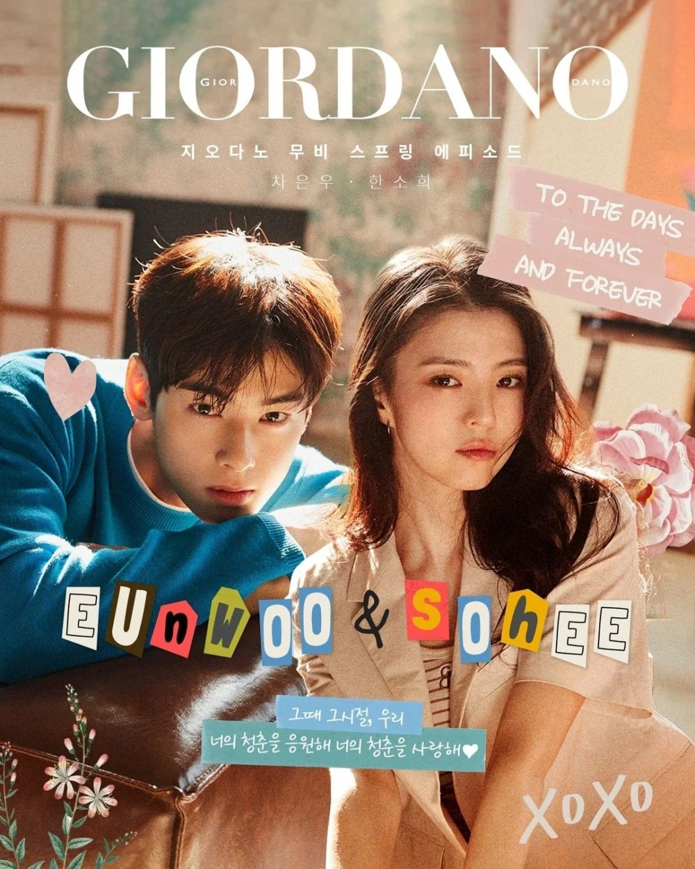 韓韶禧與車銀優自2023年開始就被服飾品牌GIORDANO選為代言人,只是之前的代言照都是分開拍攝的單人物料,雖然像是在同一個背景,但勝似同框卻沒有真的同框,連少數幾張「合照」也都是靠P圖。不少粉絲感到可惜,紛紛敲碗想看到兩人同框,現在等了半年終於等到啦!