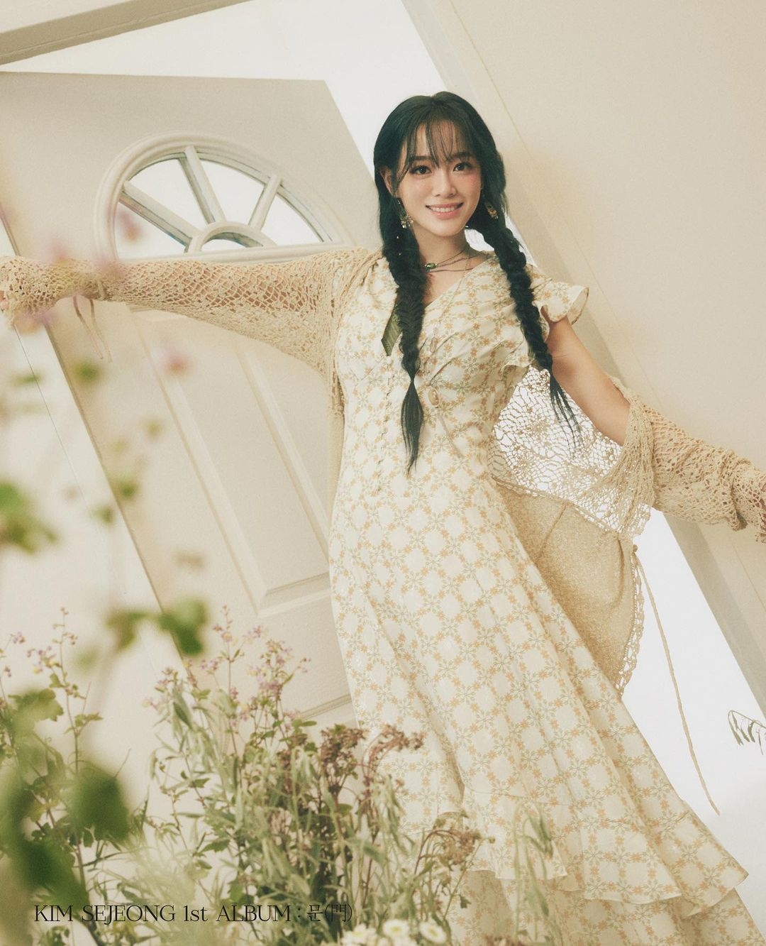 擁有一襲長捲髮和明亮大眼的金世正,這次以白色系的造型登場,在溫柔的美貌上又增添了清秀的感覺。穿上花卉格紋圖案的長裙與花草合影的她臉上洋溢著燦爛笑容,彷彿化身童話裡的花精靈,而兩條辮子的清純髮型,看起來也很適合演部愛情電影的初戀女主角啊~