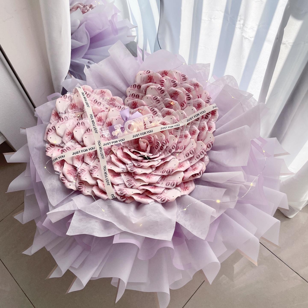 「鈔票花束」正如其名,是將鈔票捲成花朵的形狀,然後用花束的方式編排在一起,這種禮物的魅力在於它的獨特性和創意,給予了傳統禮物新的詮釋和感受,而背後的情感,更是讓這種禮物充滿了深意♡