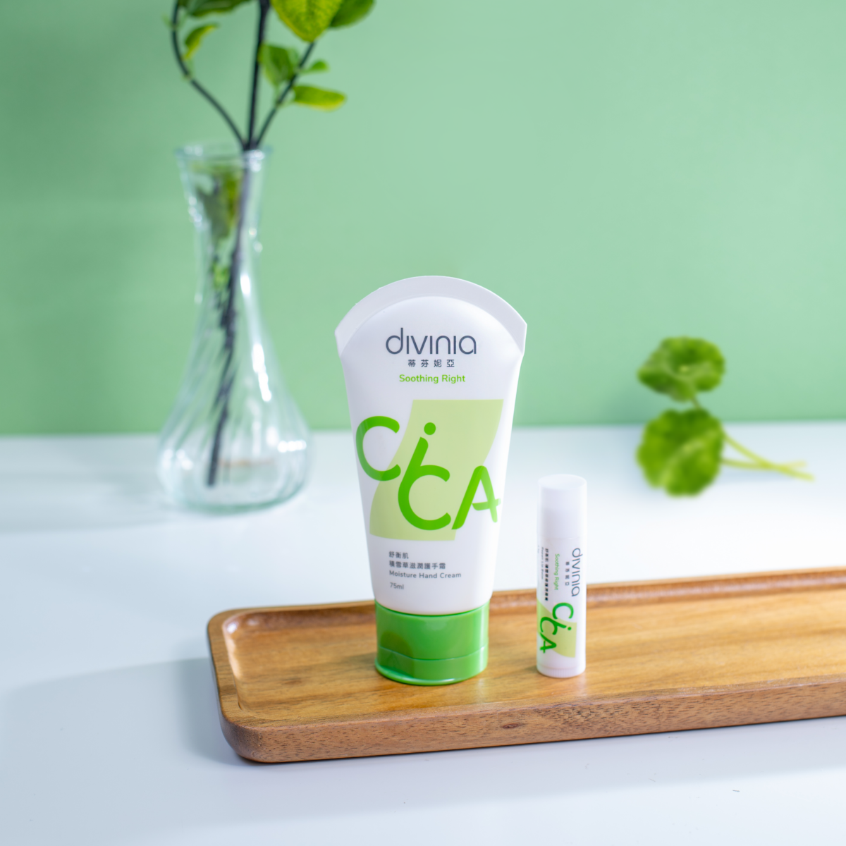 推薦商品:《divinia蒂芬妮亞舒衡肌積雪草滋潤護手霜》、《divinia蒂芬妮亞舒衡肌積雪草修護潤脣膏》
