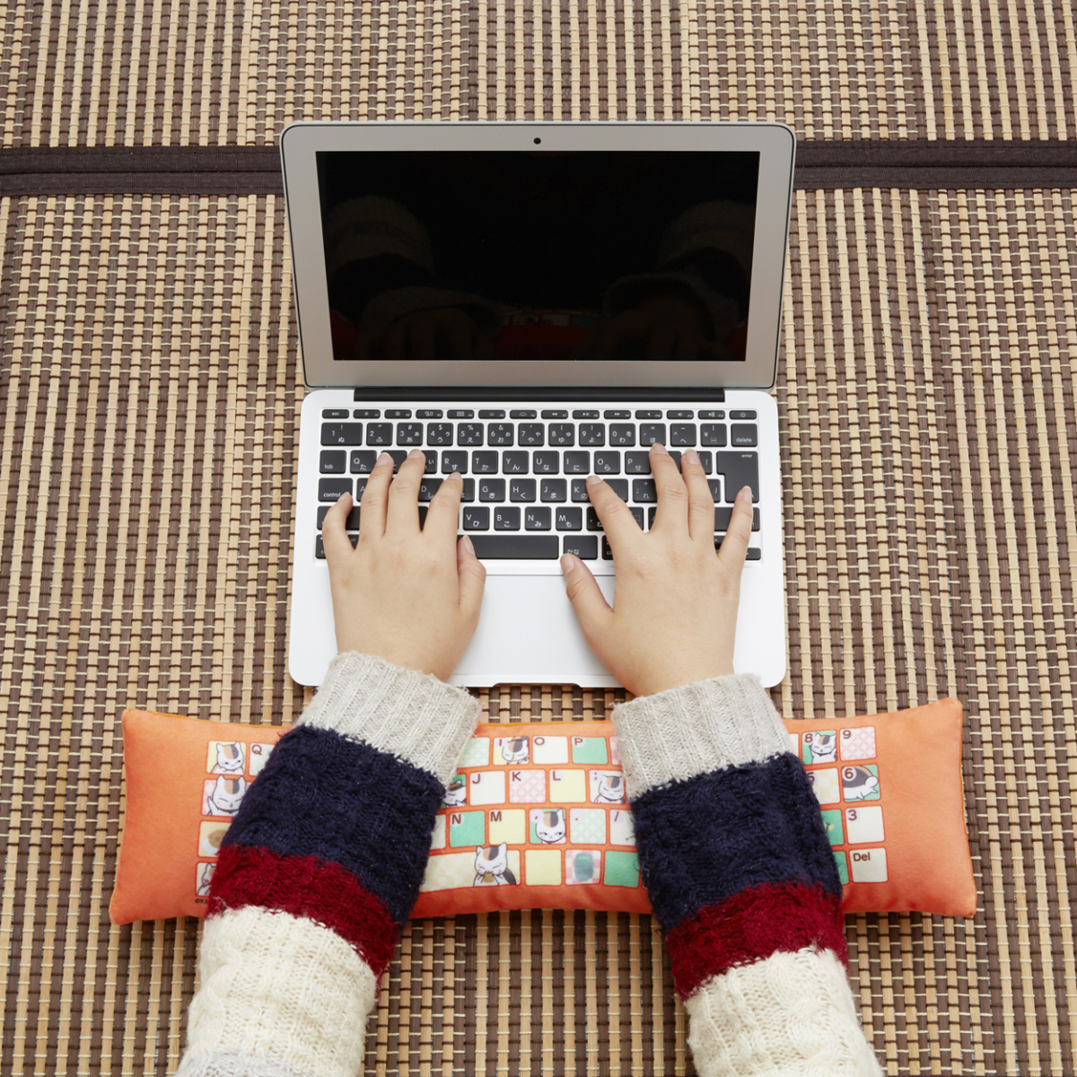貓咪老師PC CUSHION除了有可愛的外型,還有結合鍵盤造型的手靠墊,讓你一邊抱著貓咪老師一邊工作。