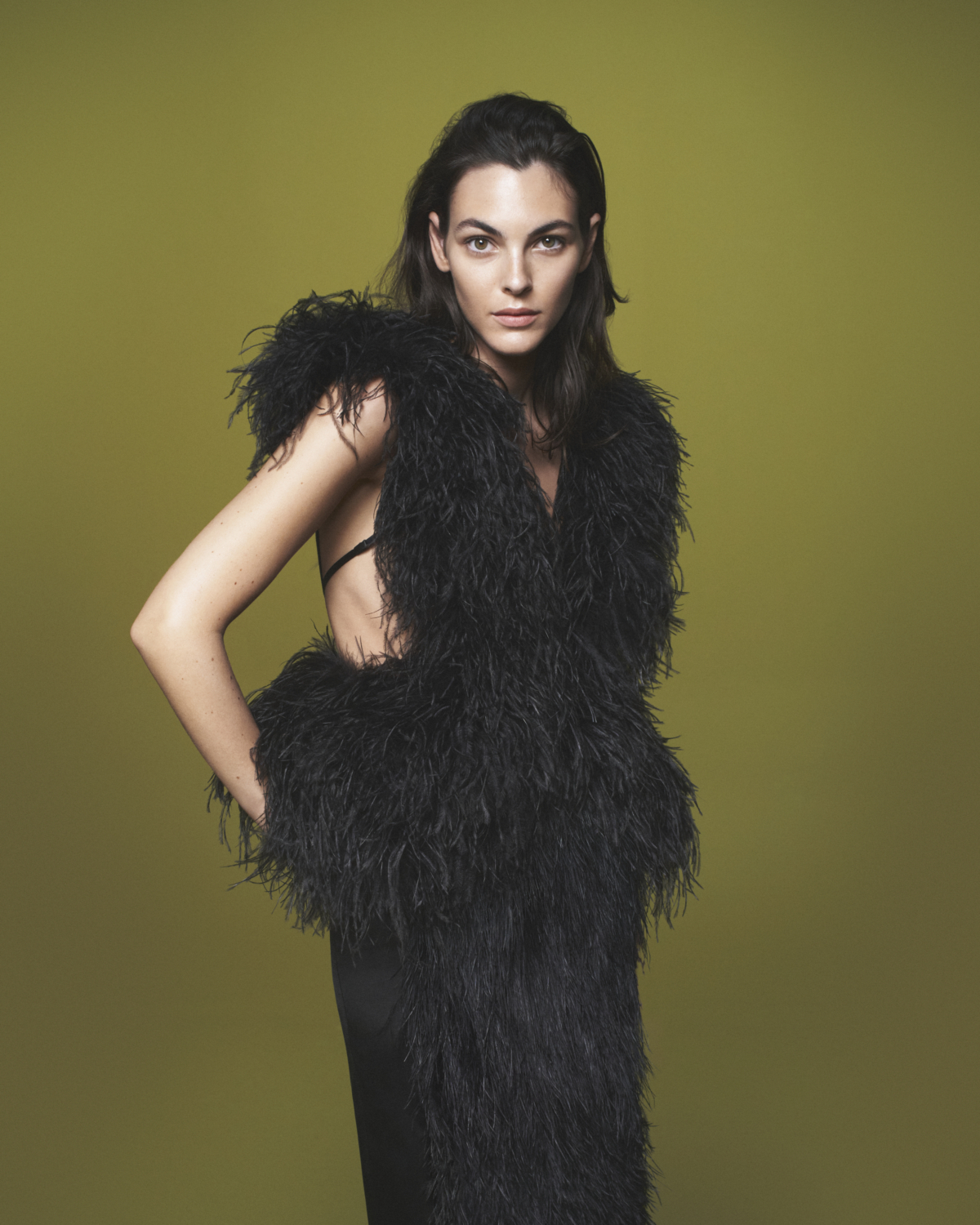 首波GUCCI 2023秋冬系列形象廣告由時尚攝影師DavidSims於米蘭執導拍攝,找來名模Vittoria Ceretti演繹時尚大片!同樣採秀場上一樣的綠色背景和電梯場景,Vittoria Ceretti將這套鑲嵌水晶 GG 金屬內衣用不同角度重新詮釋,既唯美又性感!