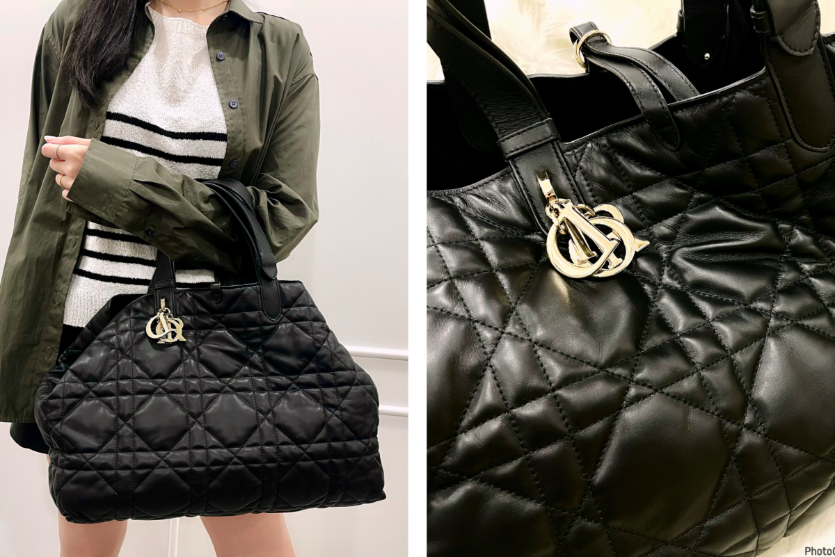 Dior Toujours 手袋於 2023 春夏時裝秀矚目登場,以黑色小牛皮製成,綴以大型藤格紋圖案縫線,最高水平精湛工藝製作,製作過程的每一個步驟都需要一絲不苟,由剪裁皮革以至點綴大型藤格紋圖案無一例外,展現 Dior 皮革工藝坊的卓越技藝!配備寬敞的內部隔層和同款小袋,可以放置隨身小物例如乾洗手、小零錢包或口紅等,中間設有CD Lock 開合精緻皮革搭帶開合,不擔心東西掉出來,外出旅遊時肩背或手提都適合!