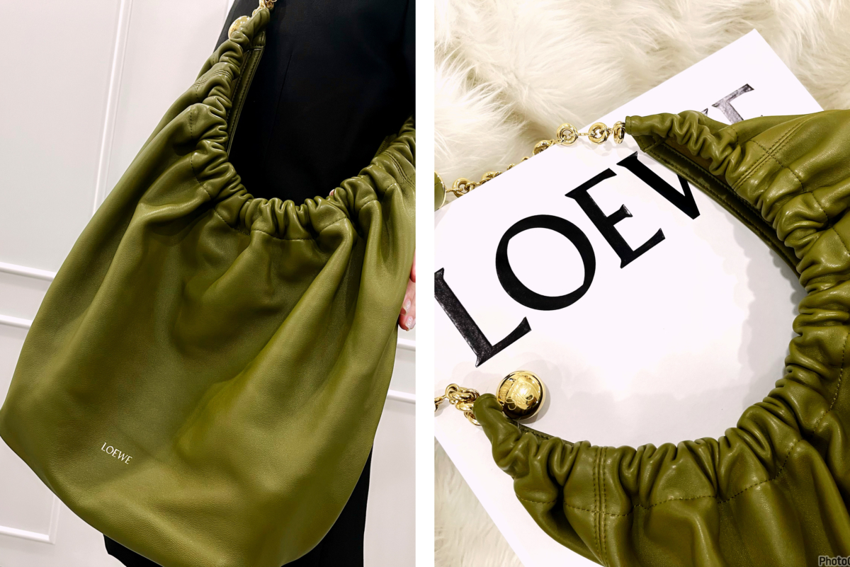 #LOEWE Squeeze 橄欖綠納帕小羊皮中款肩背包