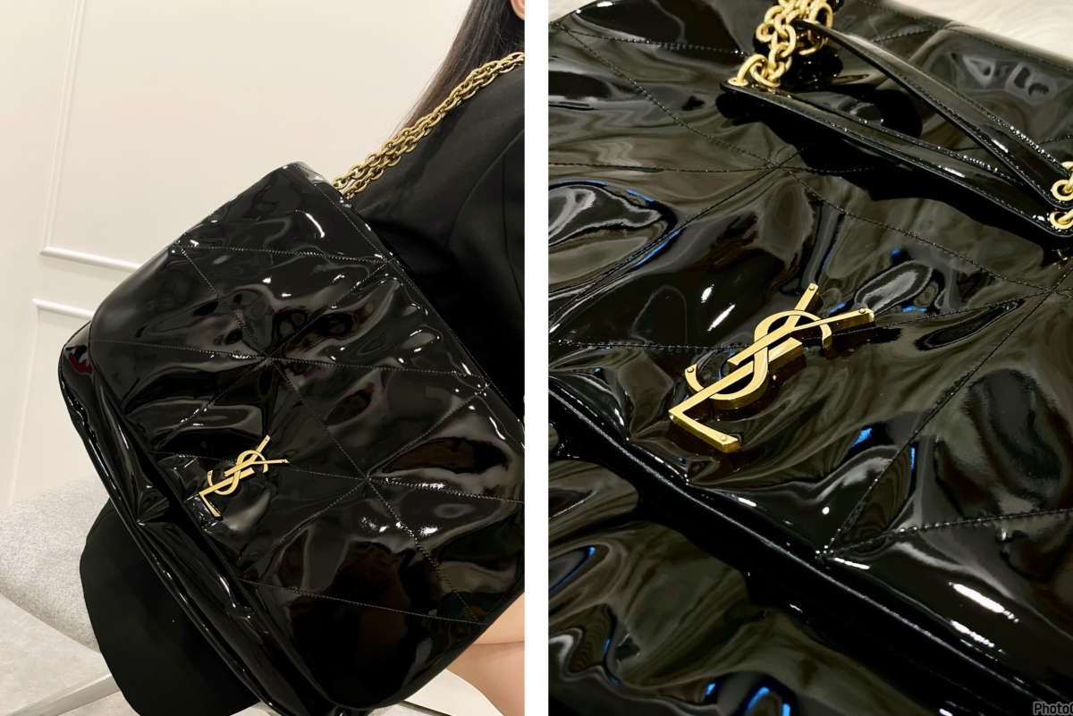 Saint Laurent 近年不斷帶來話題手袋之作,在 2022冬季系列登場的 Jamie 手袋,憑著絎縫縫線特色和細膩柔軟袋身在推出後深受喜愛,隨即成為品牌的人氣手袋款式之一!品牌又在 2023 夏季將 Jamie 手袋重新詮釋,帶來全新「Jamie 4.3」 版本,採用大型翻蓋和雙鏈條設計,飾有品牌標誌性 Le Maillon 鏈環和經典 YSL Logo,袋身除了有標誌性 Carré Rive Gauche 絎縫縫線元素之外,還有編輯推薦的這顆非動物毛皮漆皮革,擁有比較少見的亮面質感,摸起來卻是舒服的軟皮革材質才直,適合酷帥女孩做搭配!