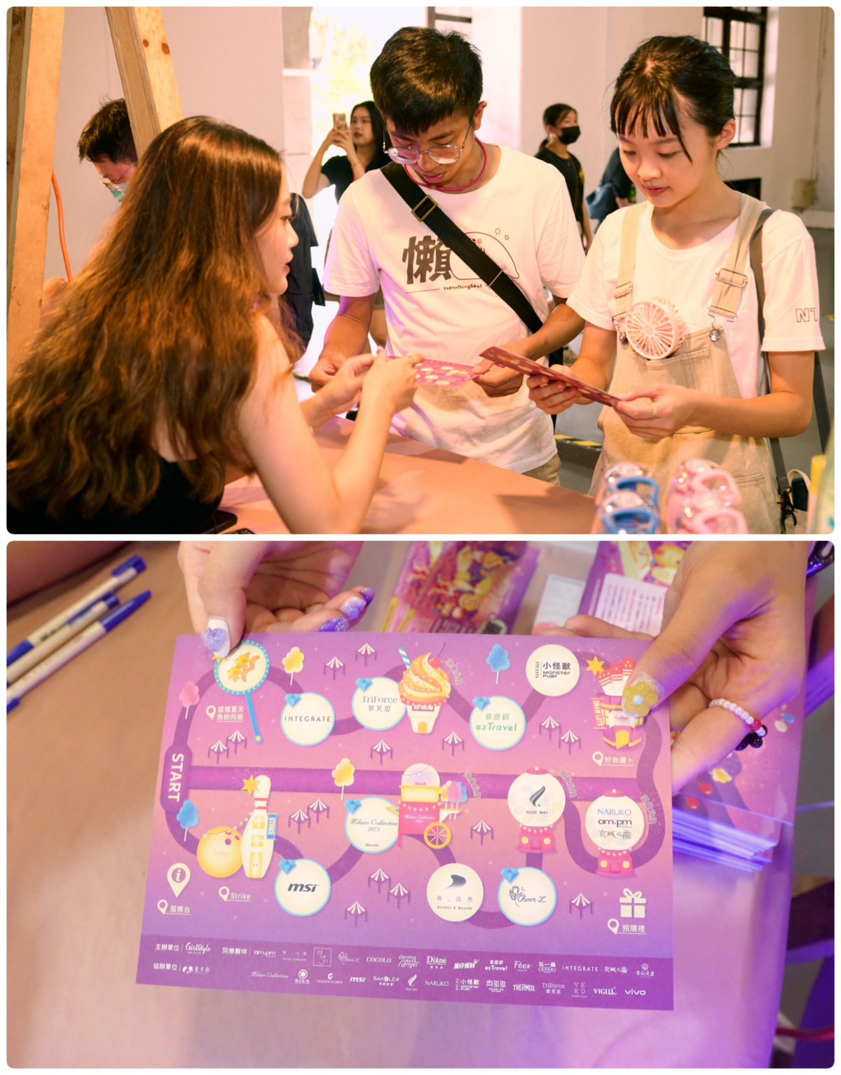 一進來第一件事就是領取玩美闖關卡,接著只需要帶著熱血的心一起勇闖仲夏不夜城!完成各關任務的同時還能收穫張張美照,集滿指定戳章後即可兌換摸彩券~超多大禮等你帶回家!