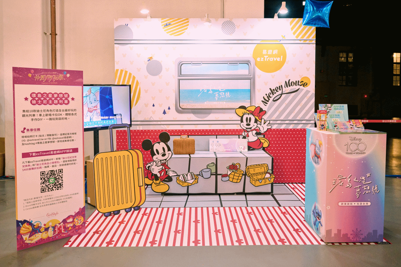 跟著環島之星夢想號歡慶迪士尼一百週年!易遊網把超可愛的迪士尼車廂搬到現場,不管大人、小孩都玩得不亦樂乎~當天下載App還加碼再送限量品牌迪士尼小樣禮包,真是稱職的出遊好夥伴!