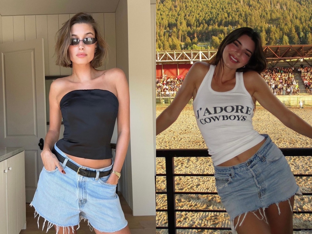 誰說丹寧一定很厚重,不能性感嗎?不管是設計師品牌或時尚品牌,有些布料會採仿丹寧的面料去呈現,為的是視覺效果上打造質感,又或者現在其實有非常多柔軟丹寧面料,適合拿來做較合身或貼身的服裝,在穿著上也會更舒適,Hailey Bieber這套丹寧泳裝形式和Kylie Jenner馬甲丹寧穿孔連身就非常擅長以此種方式搭配出性感造型!