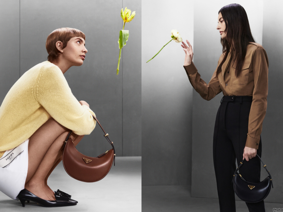 在全新形象廣告中也能看到 Prada Arqué 包款透過別樣視角,重新詮釋美學中的關鍵元素,由木製模具在最初塑造包身結構,肩帶延展整個包身曲線,與對比鮮明的線條一起凸顯包款的幾何美學與平衡,靈感源於雋永的 Hobo 包款設計,並與柔軟小牛皮包身與納帕皮革襯裡展現奢華格調。此包款更推出黑色、干邑色與白色三種顏色可供選擇,包身正面飾以琺瑯金屬三角標誌與金色飾件增添時尚感。