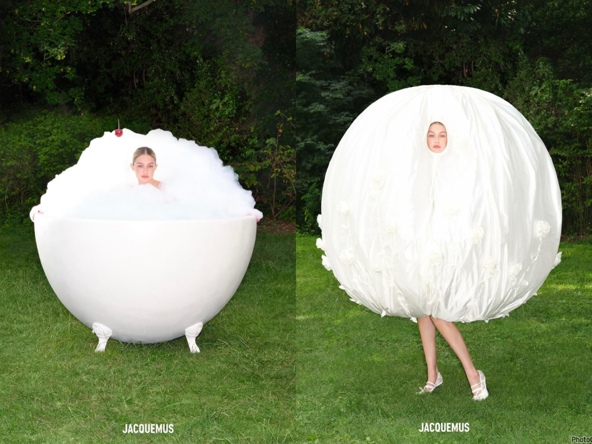 秋冬持續延燒怪美時尚!Jacquemus找來Gigi Hadid大玩創意視覺、泡在浴缸裡旁邊還放著一顆櫻桃!LOEWE、Prada 秋季廣告營造怪誕氛圍