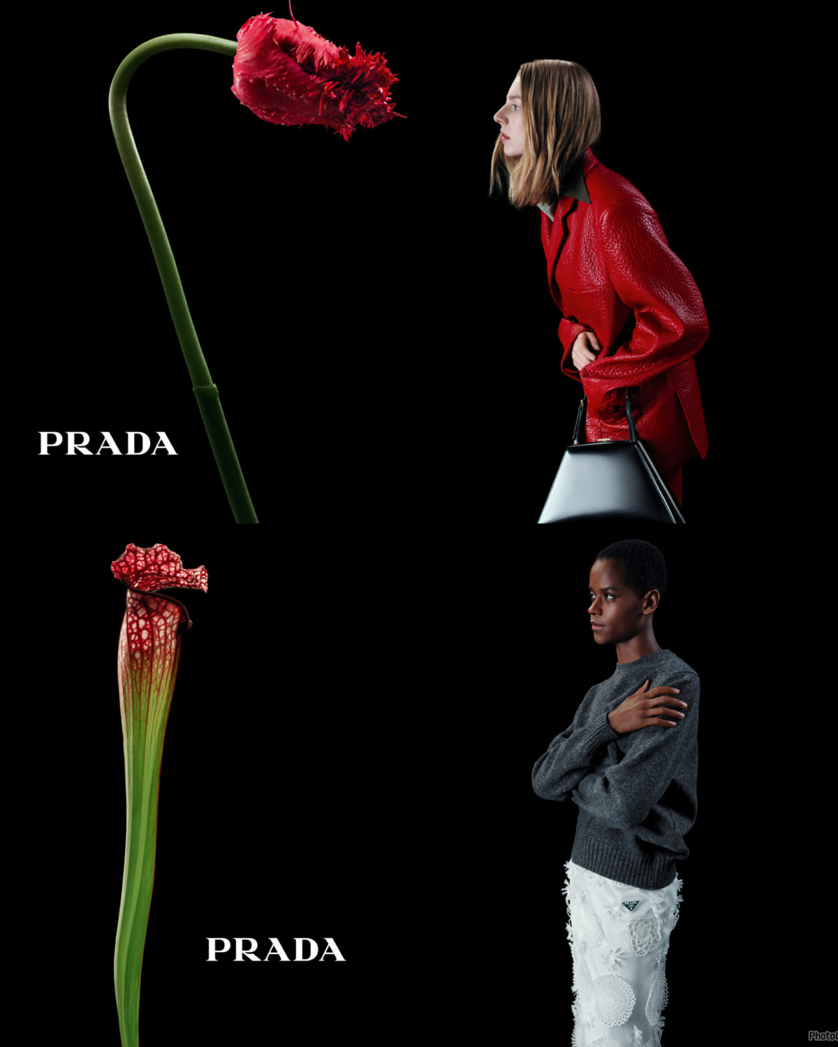 美麗、關懷和愛,Prada 透過探索這些人性永恆不變的普世情感,為 2023 秋冬系列和形象廣告帶來了全新靈感,這些情感通過花朵的隱喻而得到生動的演繹,花朵並被重新塑造成和人類一般的大小尺寸,同時也暗示著超凡脫俗的意涵。