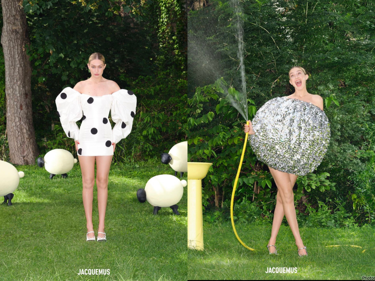 Jacquemus在秋季形象廣告中找來Gigi Hadid 合作拍攝了一組超逗趣形象照,浮誇的視覺效果讓人忍不住多看一眼!形象大片由攝影師Johnny Dufort拍攝,瑞士穿搭達人Ursina Gysi擔任造型。本季「LE CHOUCHOU」拍攝主題以巨大球形為重點,Gigi Hadid 從球型物體不斷段延伸,在抽象藝術靈感的環境中,例如以奇怪姿勢趴臥在草地上、拿著傳統黃色噴水頭無憂無慮的噴灑、一臉嚴肅的凝視前方或全身沾滿泡沫的泡在浴缸裡、旁邊卻有顆注目的櫻桃!其中最引人注目的就是身穿一件巨大的雕塑白色球形服裝,底部刺有玫瑰花,完美展現Jacquemus 的獨特風格。