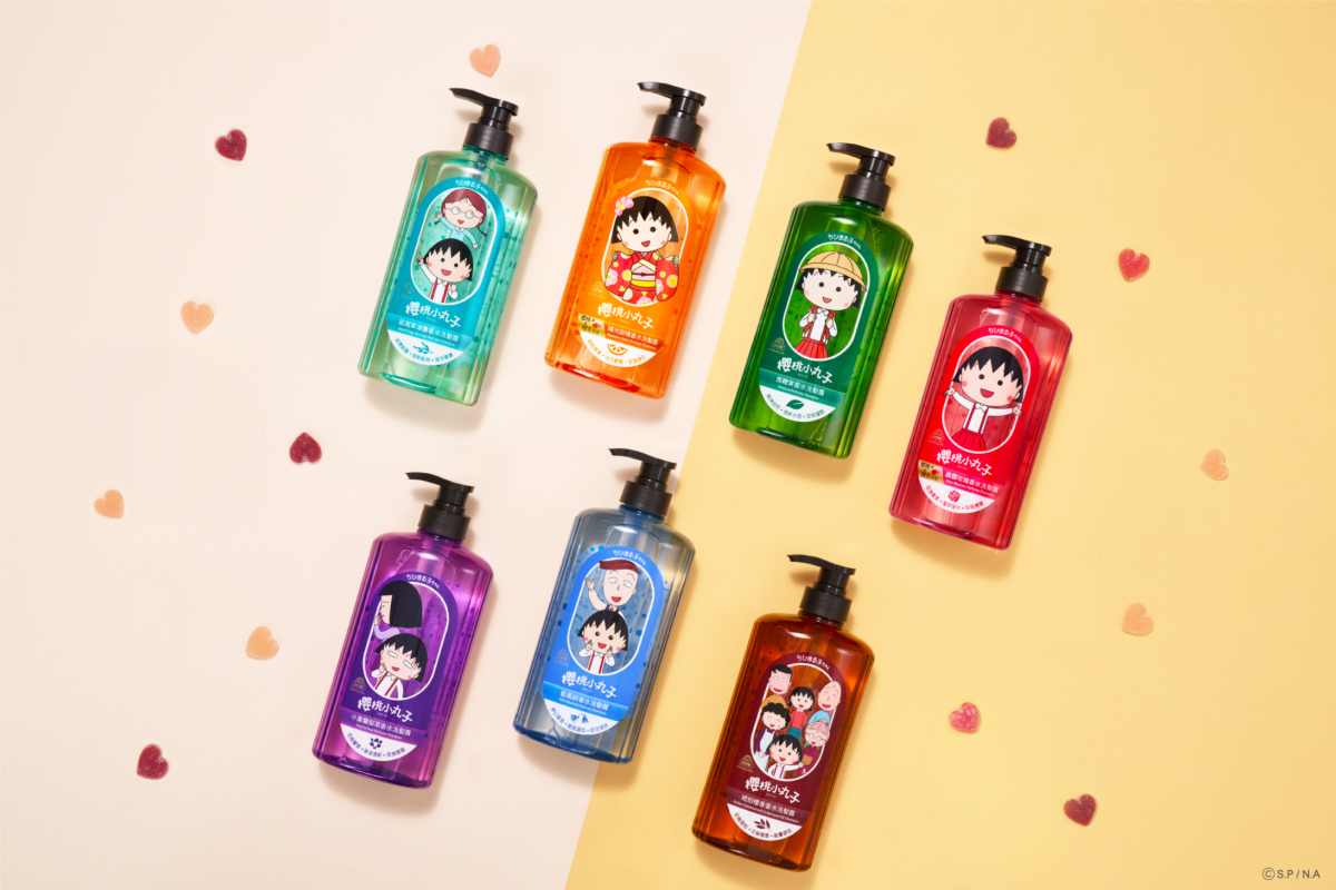 七款擁有經典香氛和晶透瓶身的「櫻桃小丸子美吾髮香水洗髮精」,獲日本官方正式授權,身穿經典白衣+紅色吊帶裙的小丸子,以各式俏皮表情向大家打招呼,小丸子更特別在「陽光甜橘」改穿橘紅色的浴衣,展現青春結合知性的一面,讓粉絲大呼好可愛。