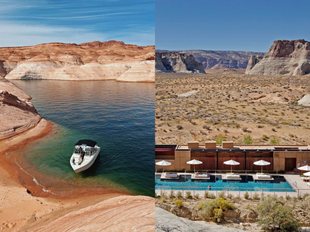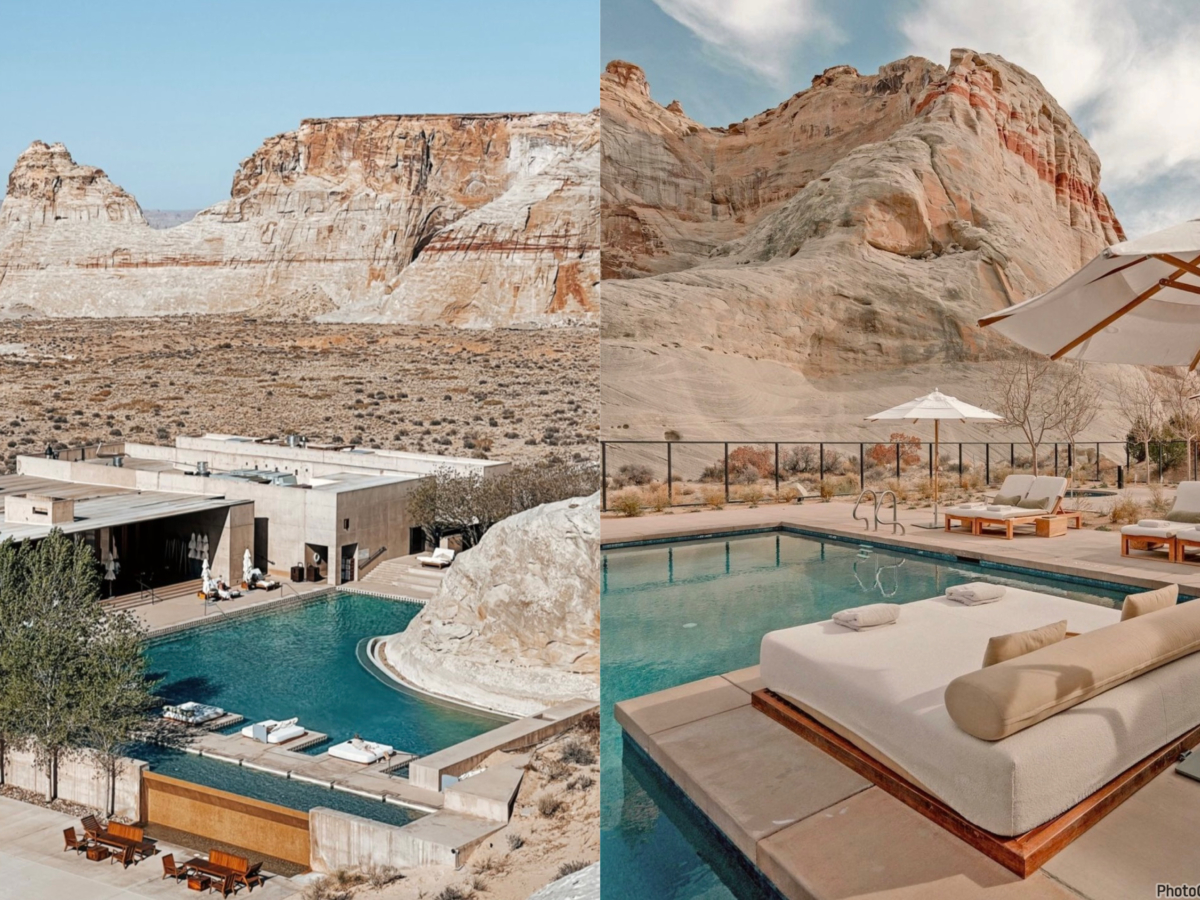 安縵奇嶺 Amangiri」位於美國猶他、亞利桑那、科羅拉多、新墨西哥四州的交界處,酒店就位在雄偉的奇石峽谷旁,被沙漠包圍、令人歎為觀止的峽谷景觀、私人泳池、露台泳池和大片落地窗,這些與自然零距離的設計足夠遠離塵囂,忘卻那些繁華世界的紛紛擾擾,不斷地讚嘆自然的奇觀,目前已是多位名人的旅遊首選之地,不管怎麼拍都超美,一生必去一次!