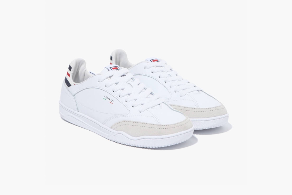 如此日常不過的穿搭,在韓韶禧厭世臉孔下也顯得格外時髦!腳上這雙FILA Slant Shot球鞋,從70年代網球鞋的獨特輪廓中汲取靈感,以1988年發布的Slant Shot 做為設計基礎推出的現代版本,鞋跟處採用了FILA代表性網球系列白線的藍色條紋細節,側邊帶有1-T218的編制。